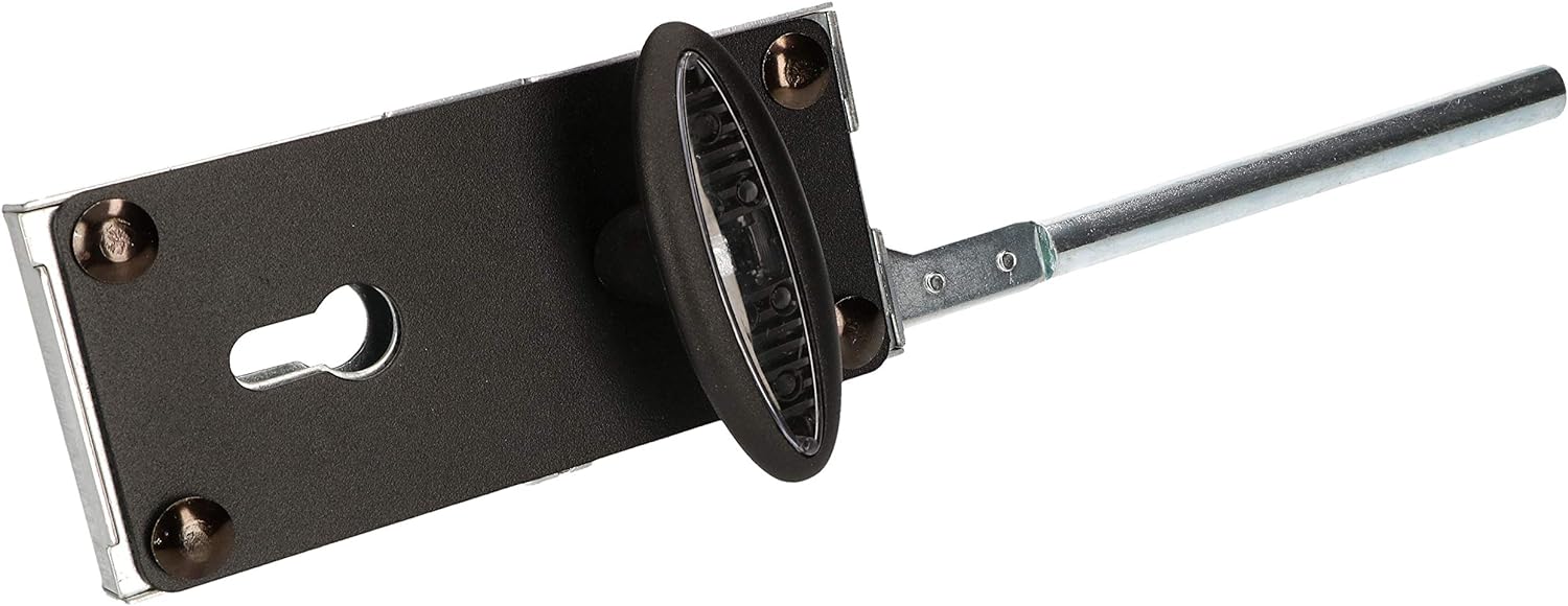 - EIGENSCHAFTEN – Die Betätigung der Verriegelung erfolgt von aussen über den Profilzylinder mittels passenden Schlüssel und von innen wird der Garagenverschluss über den Drehknauf bedient. Wie bei herkömmlichen Schlössern drehen Sie den Schlüssel