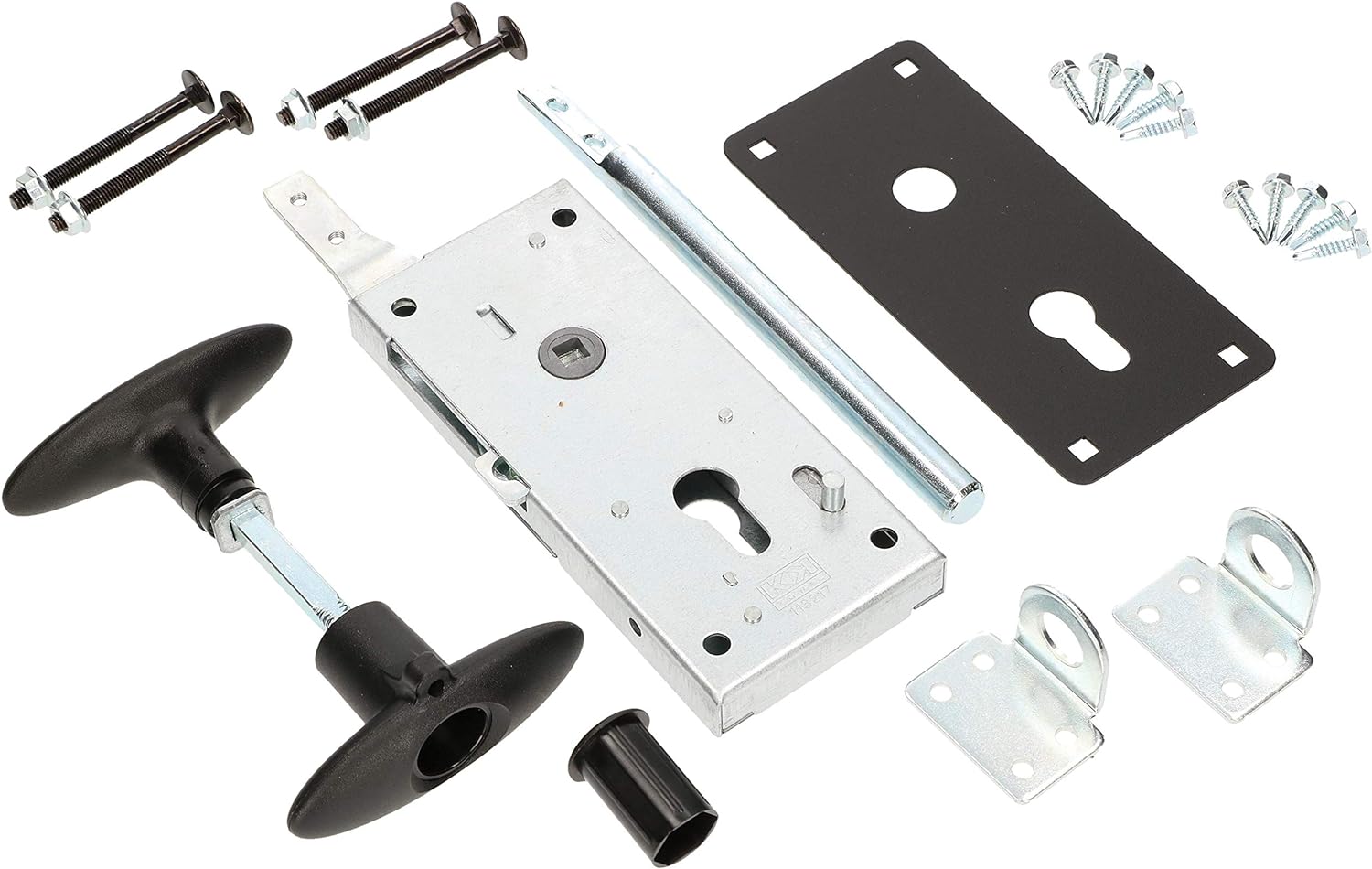 - KOMPLETTER SATZ – Der KOTARBAU Garagentorschloss Satz enthält einen Schlosskasten, ein Frontschild, zwei Torgriffe verbunden mit einem Vierkantbolzen, einen Türknauf, einen Riegelbolzen mit der Länge von 200mm, zwei Führungselemente für den