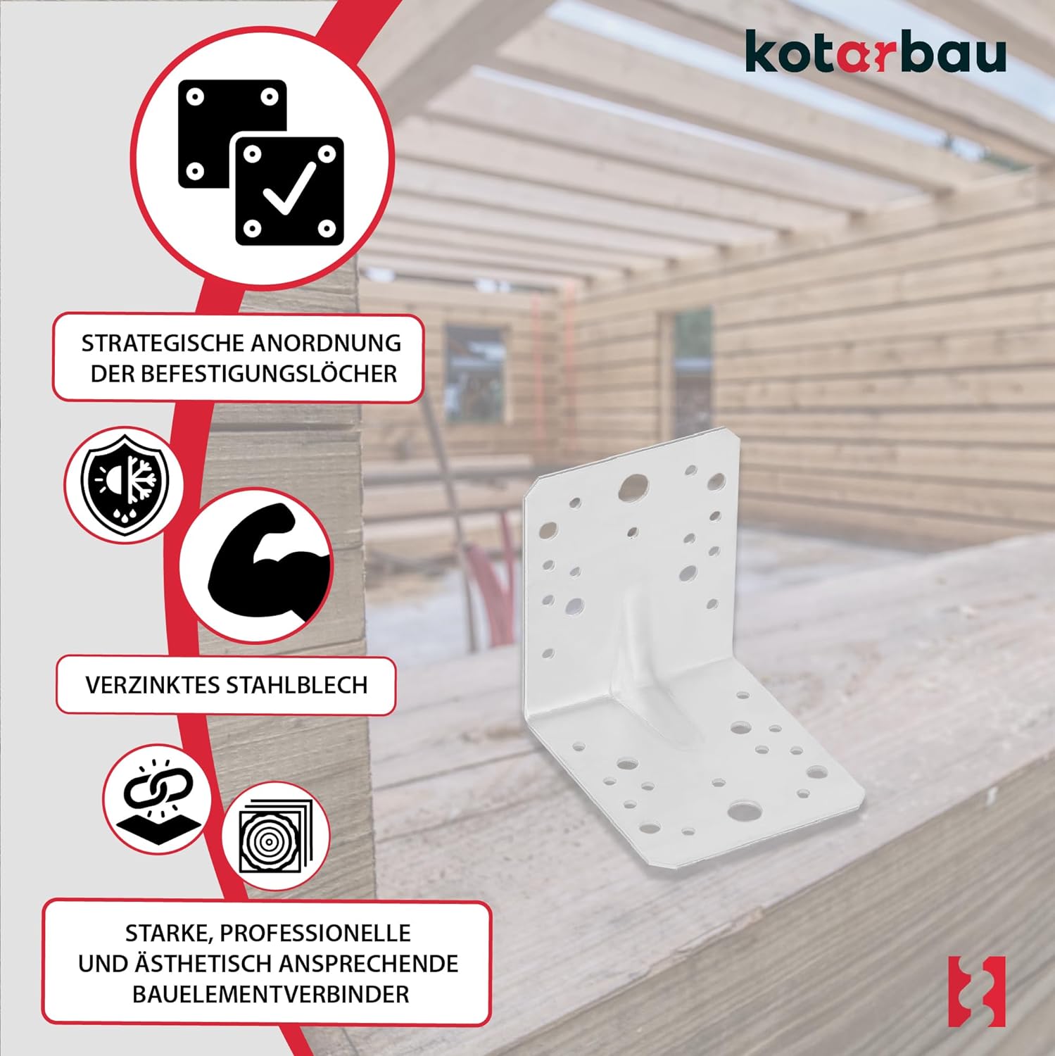- ✔️ WIDERSTANDSFÄHIGKEIT – Die Balkenwinkel (25 Stk.) von KOTARBAU zeichnen sich durch ihre Top- Qualität aus. Die Wahl von Materialien, aus denen sie gefertigt werden, gewährleistet eine lange Lebensdauer der Produkte. Die Metallwinkel für Holz