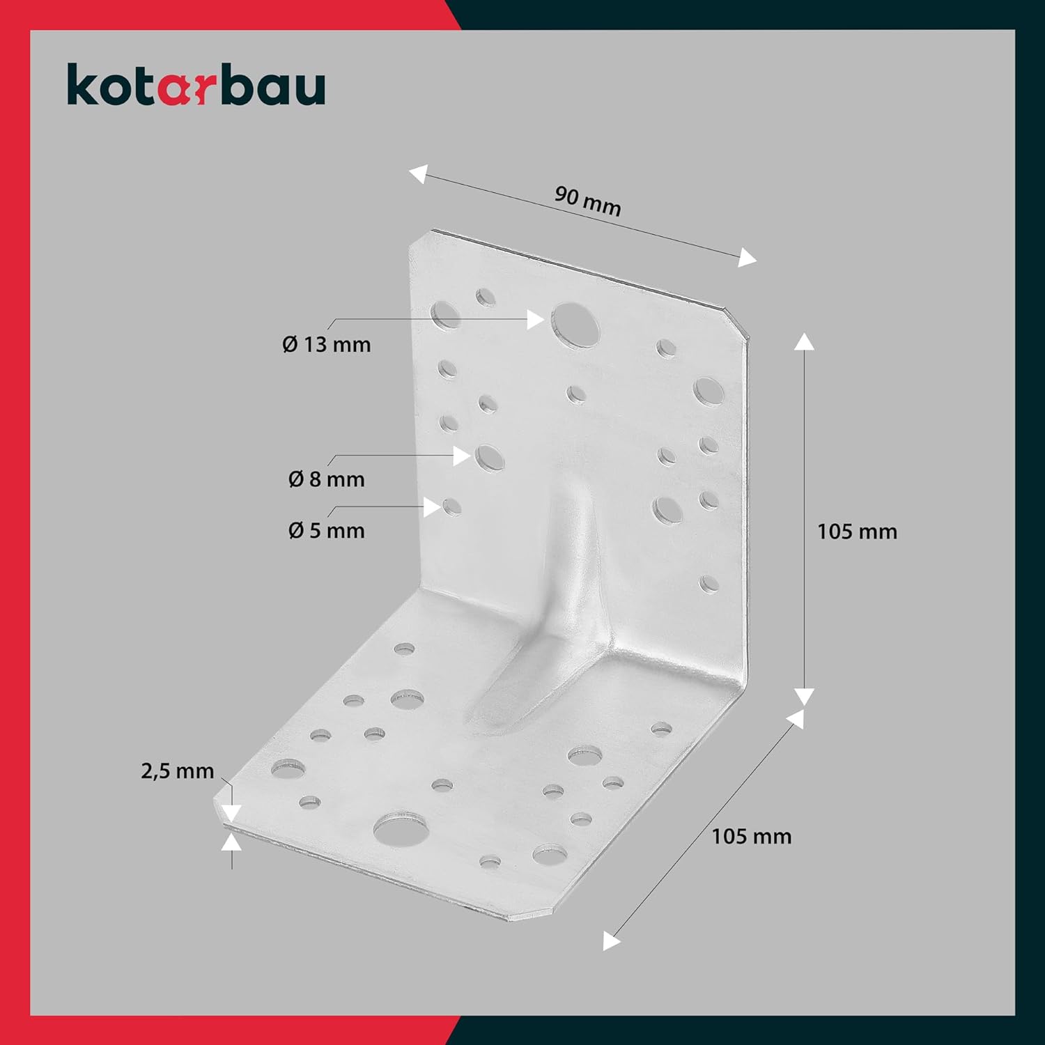 - ✔️ TECHNISCHE DATEN: Set – 25 Stk. - Länge der Schenkel: 105 x 105 mm – Breite des Produkts: 90 mm – Stärke des Materials: 2,5 mm – Gewicht des Sets: 8125g - mit Rippenverstärkung, 2 x Löcher: 13 mm - 8 x Löcher 8 mm – 26 x Löcher: 5
