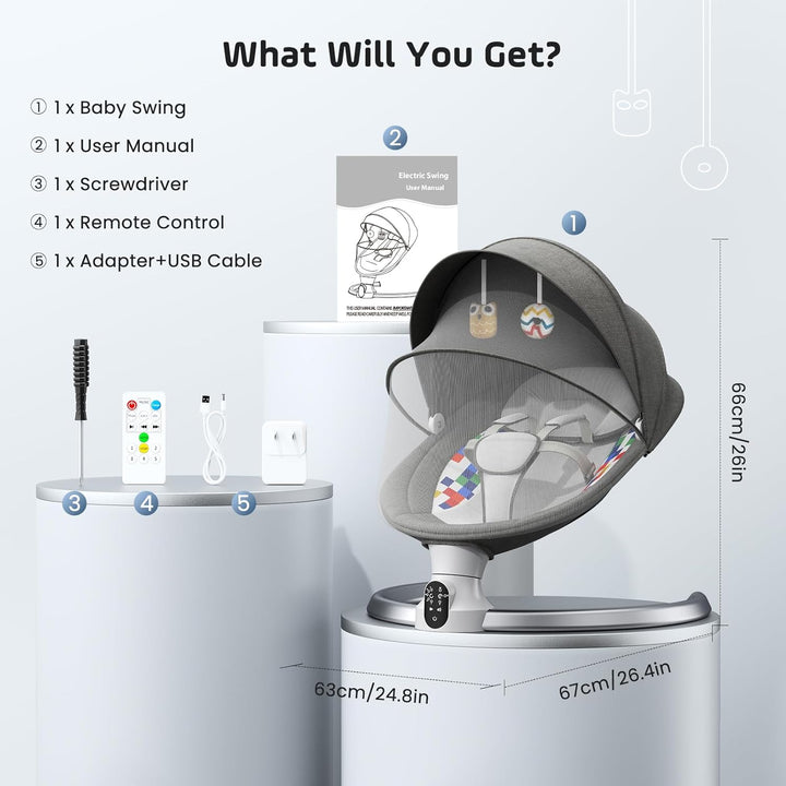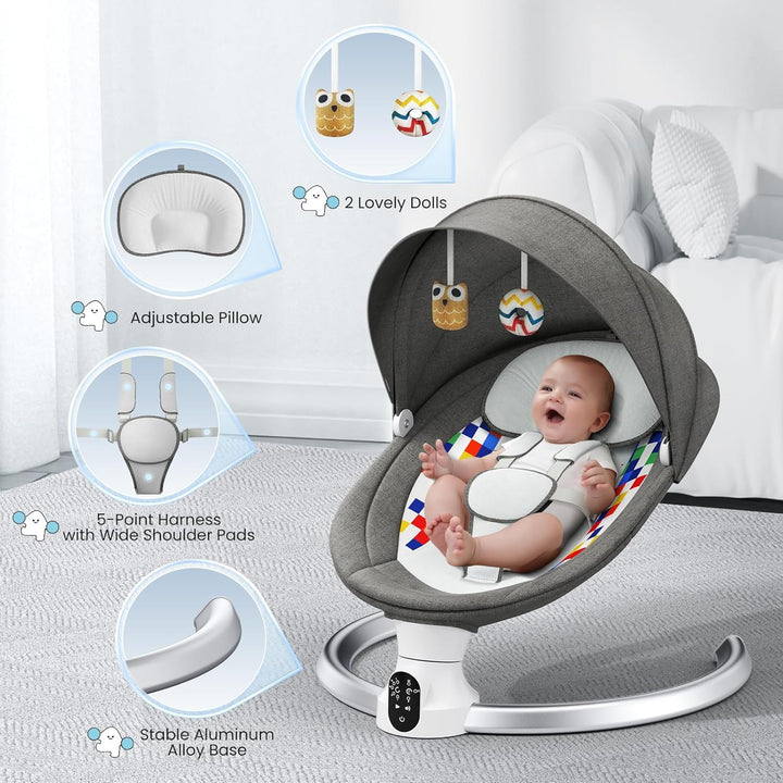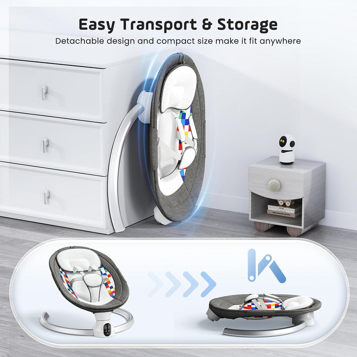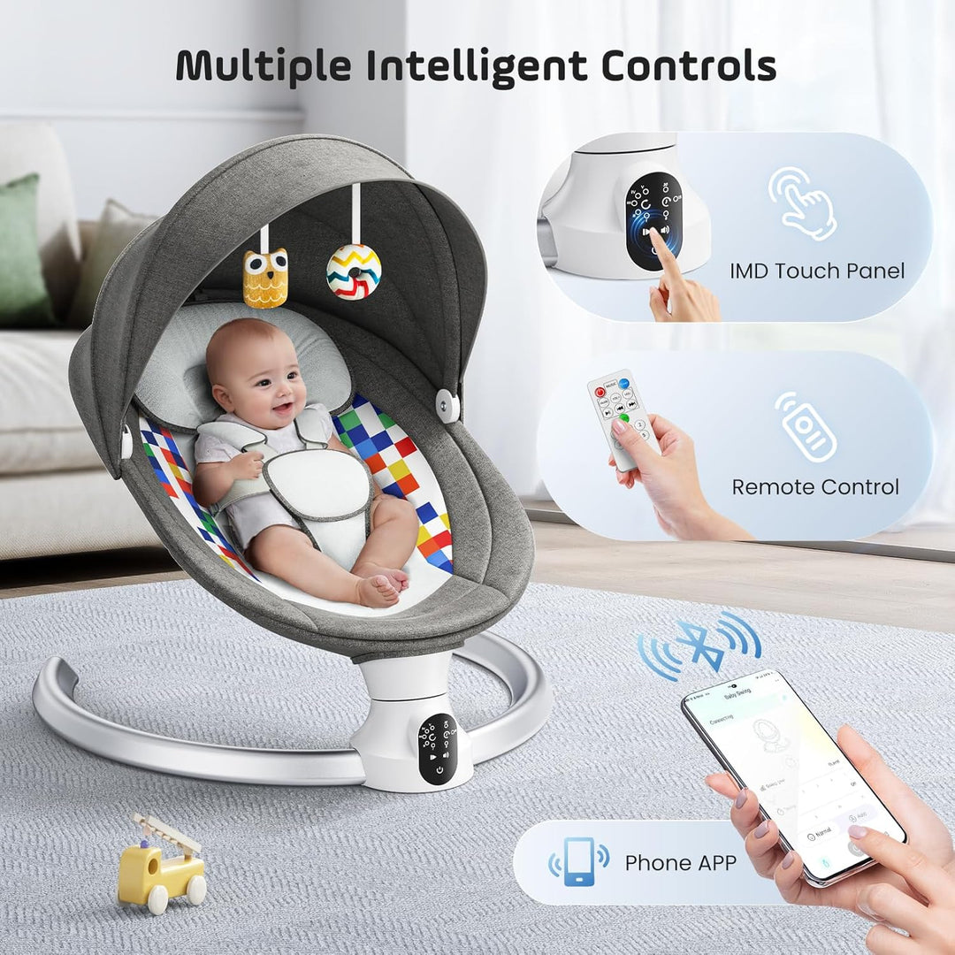 - 【Blueteeth -Musik und Fernbedienung】 Diese Säuglingsschwung verfügt über 12 voreingestellte Lieder, um Ihren Kleinen glücklich und fröhlich zu halten. Sie können die beliebtesten beruhigenden Songs oder Kinderreime Ihres Babys über Blueteeth