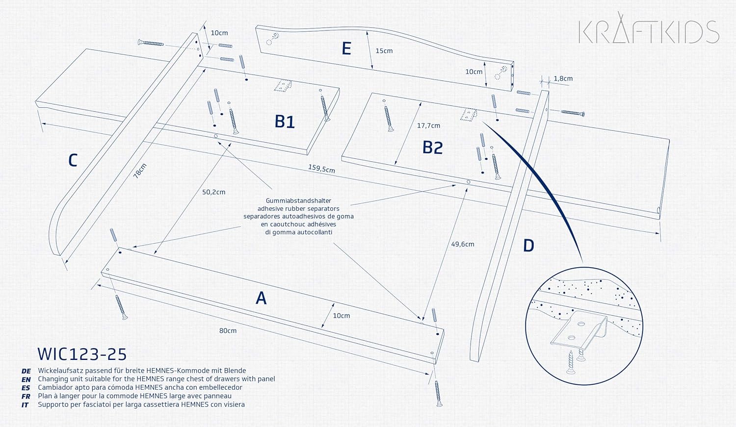 - Produktmasse: Aussenmasse 80 cm breit, 78 cm tief, 10 cm hoch, Blende 160 cm breit