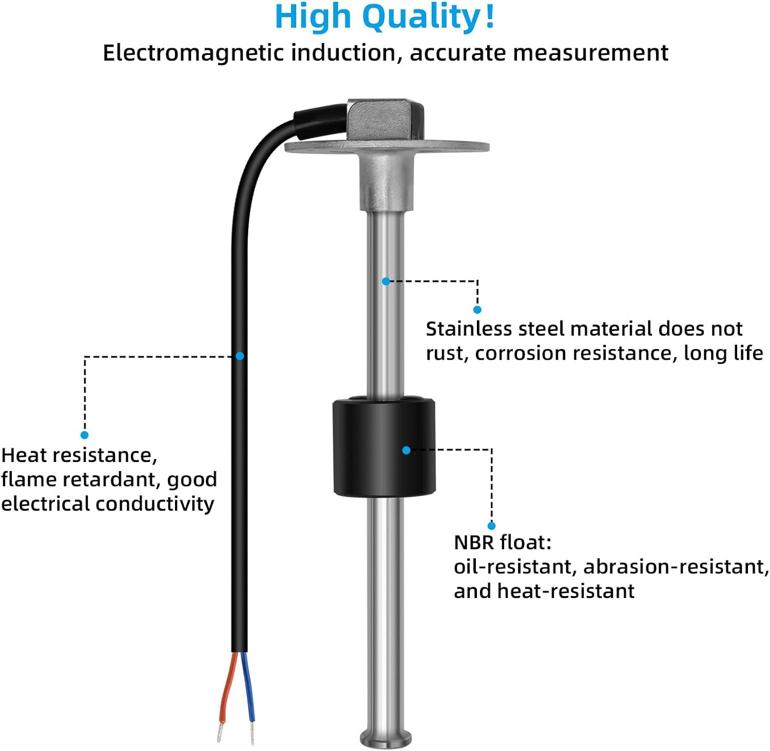 - [Hohe Präzision und lange Lebensdauer]: Das Kraftstoffanzeige Äussere besteht aus rostfreiem Stahl, und das Innere wird durch hochwertige Reed-Schalter gesteuert. Der Sensor ist korrosionsbeständig, rostet nicht, hat eine lange Lebensdauer, ein