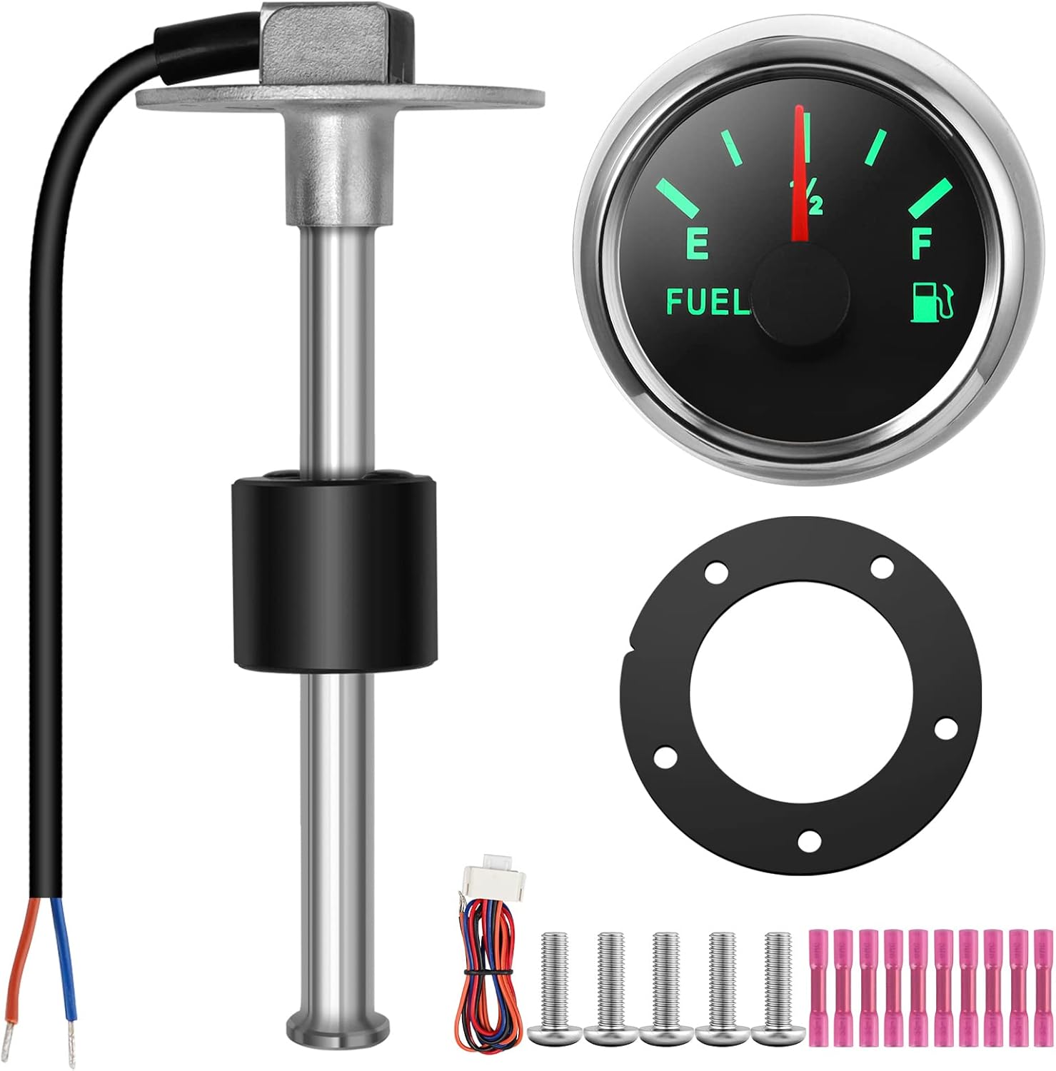 - [Leicht ablesbar]: Die Kraftstoffanzeige hat 8 einstellbare Hintergrundbeleuchtung Farben, IP67 wasserdicht, Edelstahlrahmen, Anti-Beschlag gebogenes Glas, leicht zu lesen (leer-1/2-voll).