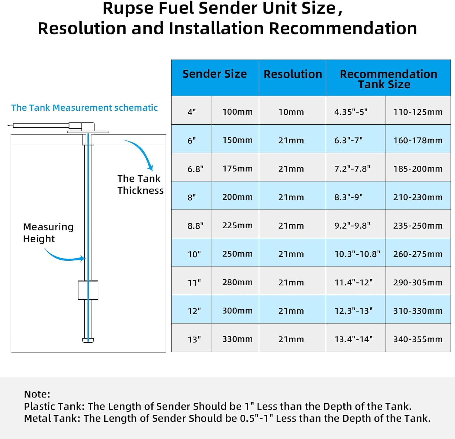 - [Multi-Size]: Diese Universal Auto Kraftstoffstandsanzeige haben verschiedene Grössen können ausgewählt werden, um verschiedene Grössen von Kraftstofftanks für Automobile, Schiffe, Yachten, Wohnmobil, landwirtschaftliche Fahrzeuge und