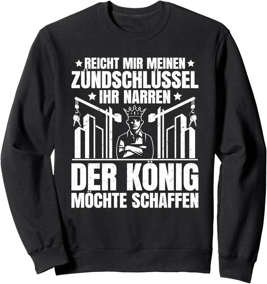 PRODUKTBESCHREIBUNGEN Du bist Kranführer bzw. Kranfahrer und auf der Suche nach einem neuen Design, das sich auf Deinen Beruf bezieht? Dann ist dieses Produkt vielleicht genau das Richtige für Dich. Auf diesem Produkt steht: "Reicht mir meinen Zündschlüssel, ihr Narren - Der König möchte schaffen". Ein passendes Design für jeden Kranführer bzw. Kranfahrer. Mehr