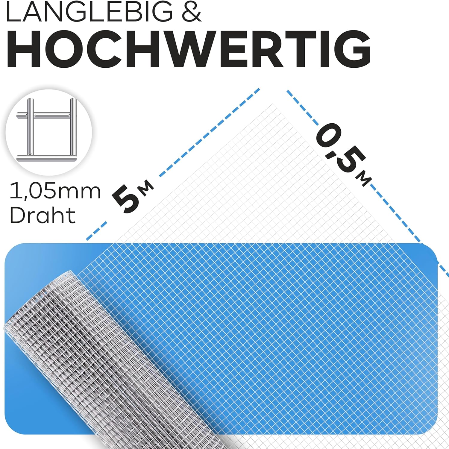- 🐹FEUERVERZINKT UND PUNKTGESCHWEIssT: Der Käfigzaun in Silber ist feuerverzinkt und punktgeschweisst, wodurch er besonders stabil sicher vor Rost ist. Bauen Sie mit dem Kaninchendraht Ihren ganz eigenen Kleintierkäfig für Hasen, Kaninchen oder