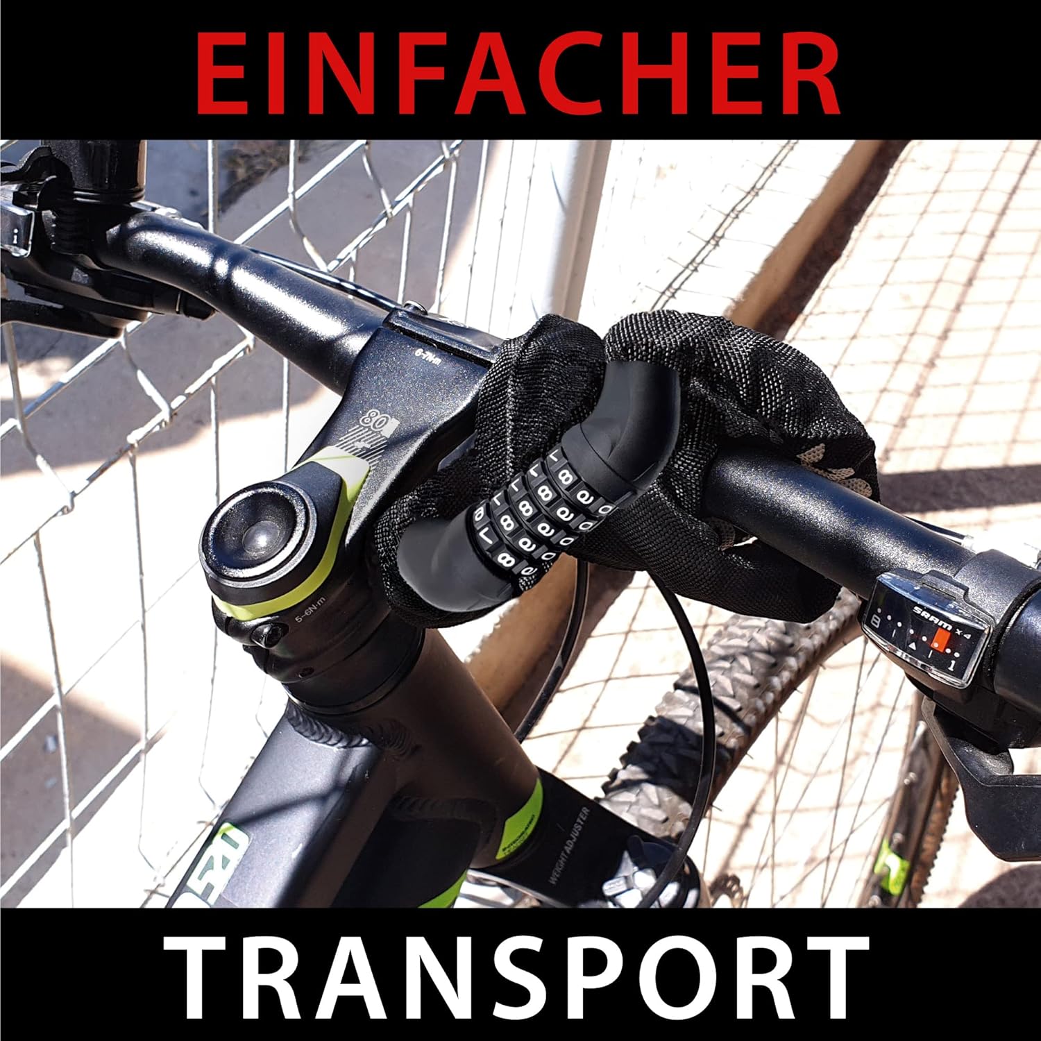 - Universell: Die Länge des Anti-Diebstahl-Schloss beträgt 100cm, eine optimale Massnahme, um das Fahrrad im urbanen Raum zu sichern und sogar 4 Fahrräder zusammenschliessen zu können. Darüber hinaus kann es in anderen Arten von Zweirädern verwendet