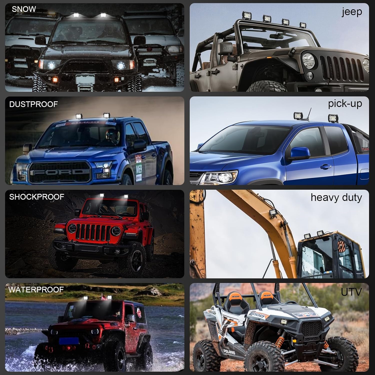 - 【Einfache Installation und breite Anwendungen】 - Die erweiterte Betriebsspannung (9 ~ 30 V) macht unsere Leuchten für verschiedene Fahrzeugtypen geeignet, sodass das LED-Würfellicht für die meisten Fahrzeugtypen (Geländefahrzeuge, SUV, ATV) weit