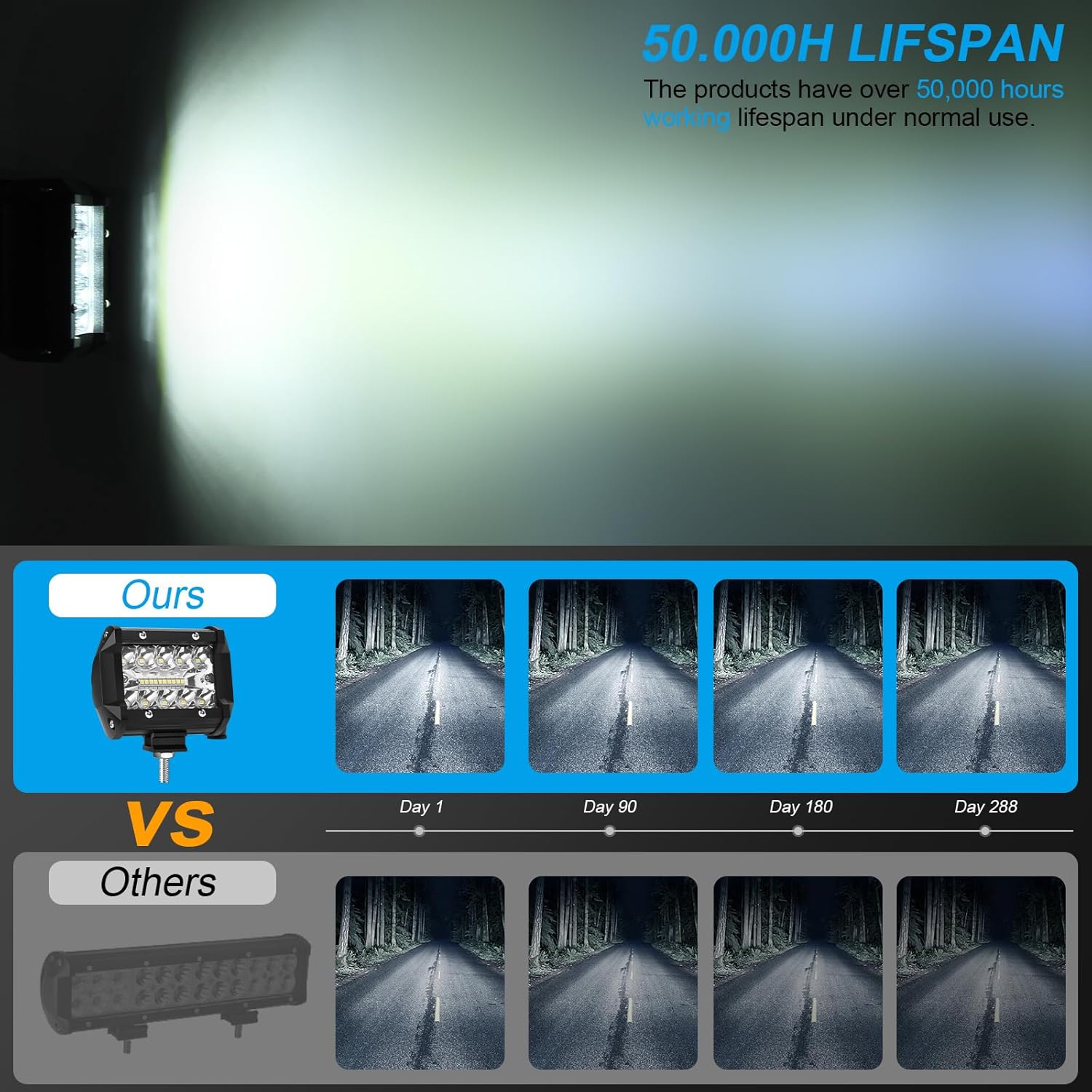 - 【Leistung und Leistungsklarheit】 - Kraumi 12v LED arbeitsscheinwerfer verwenden eine ultrabreite 120-Grad-Projektionsreflektoroptik, um ein gleichmässiges und gleichmässig verteiltes Licht über ein horizontales Sichtfeld zu liefern. Als Arbeits-