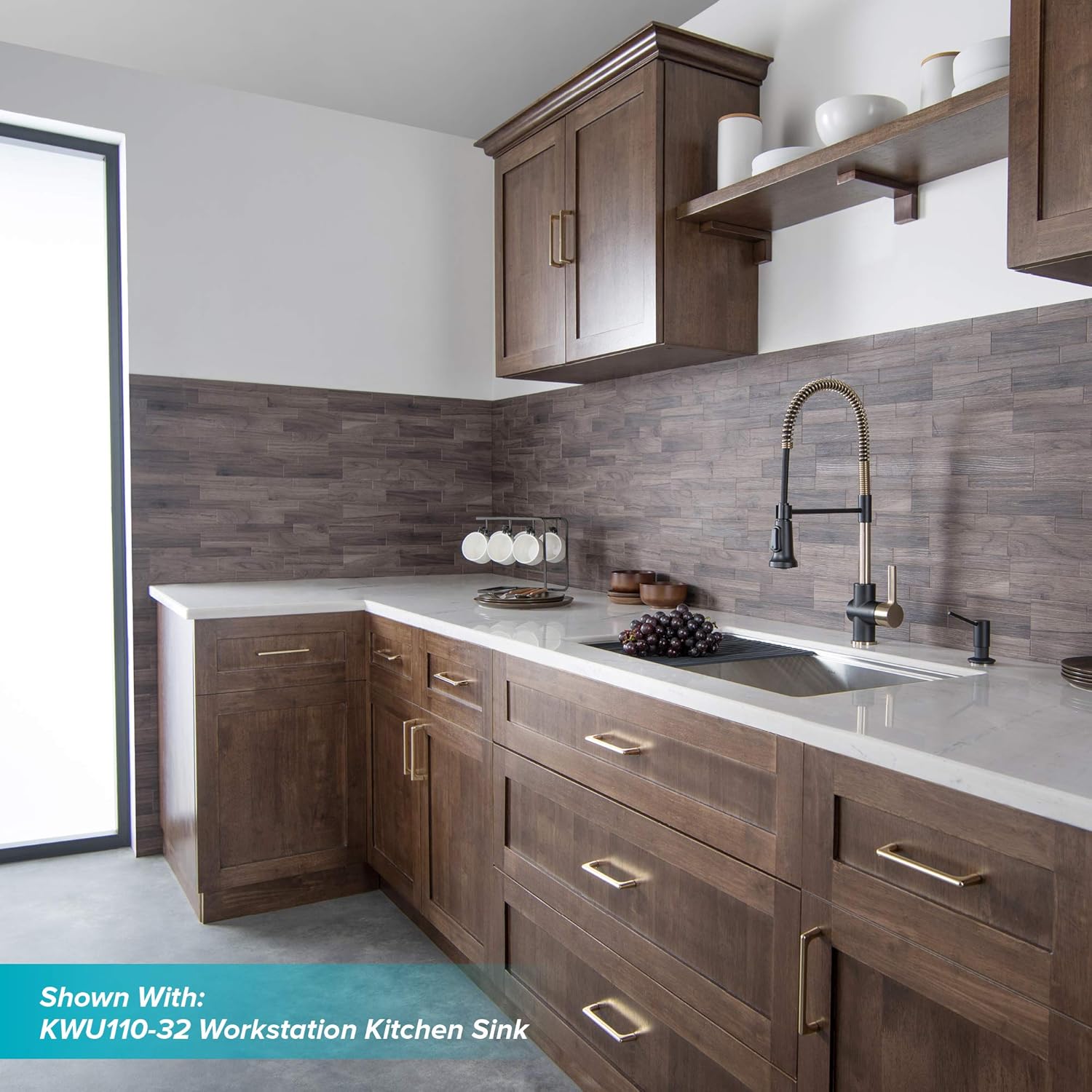 - Handelsübliche Armatur ist sowohl flexibel als auch funktional, mit einem robusten offenen Spiralfederauslauf für einen industriellen Look; der hohe, bogenförmige Auslauf mit Edelstahlschlauch bietet erhöhte Beweglichkeit des Sprühgeräts mit