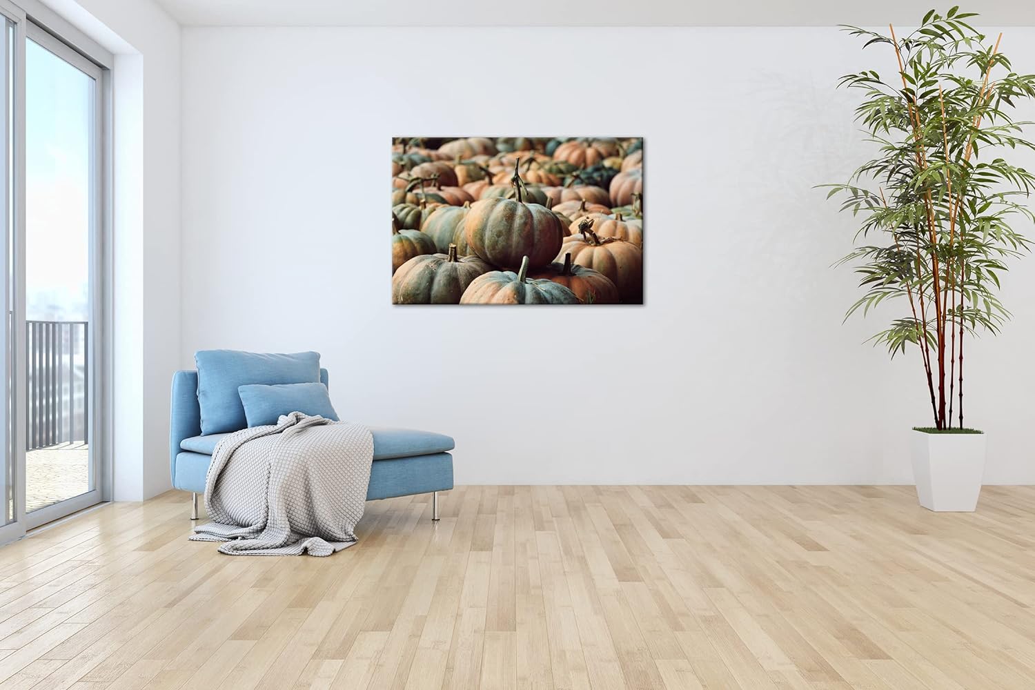 deyoli Kürbislager Format: 80x60 als Leinwandbild, Motiv fertig gerahmt auf Echtholzrahmen, Hochwert