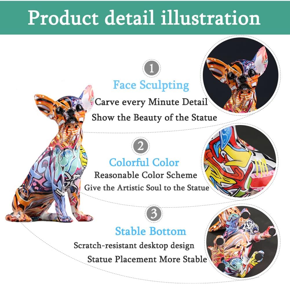 - 【Add color to life】Dies ist eine Chihuahua-Statue, die perfekt für jedes Zuhause ist. Ob Sie auf der Suche nach einer neuen Dekoration für Ihr Wohnzimmer sind.oder Sie suchen, um etwas Charakter zu Ihrem Haus oder Büro hinzuzufügen.Sie können es