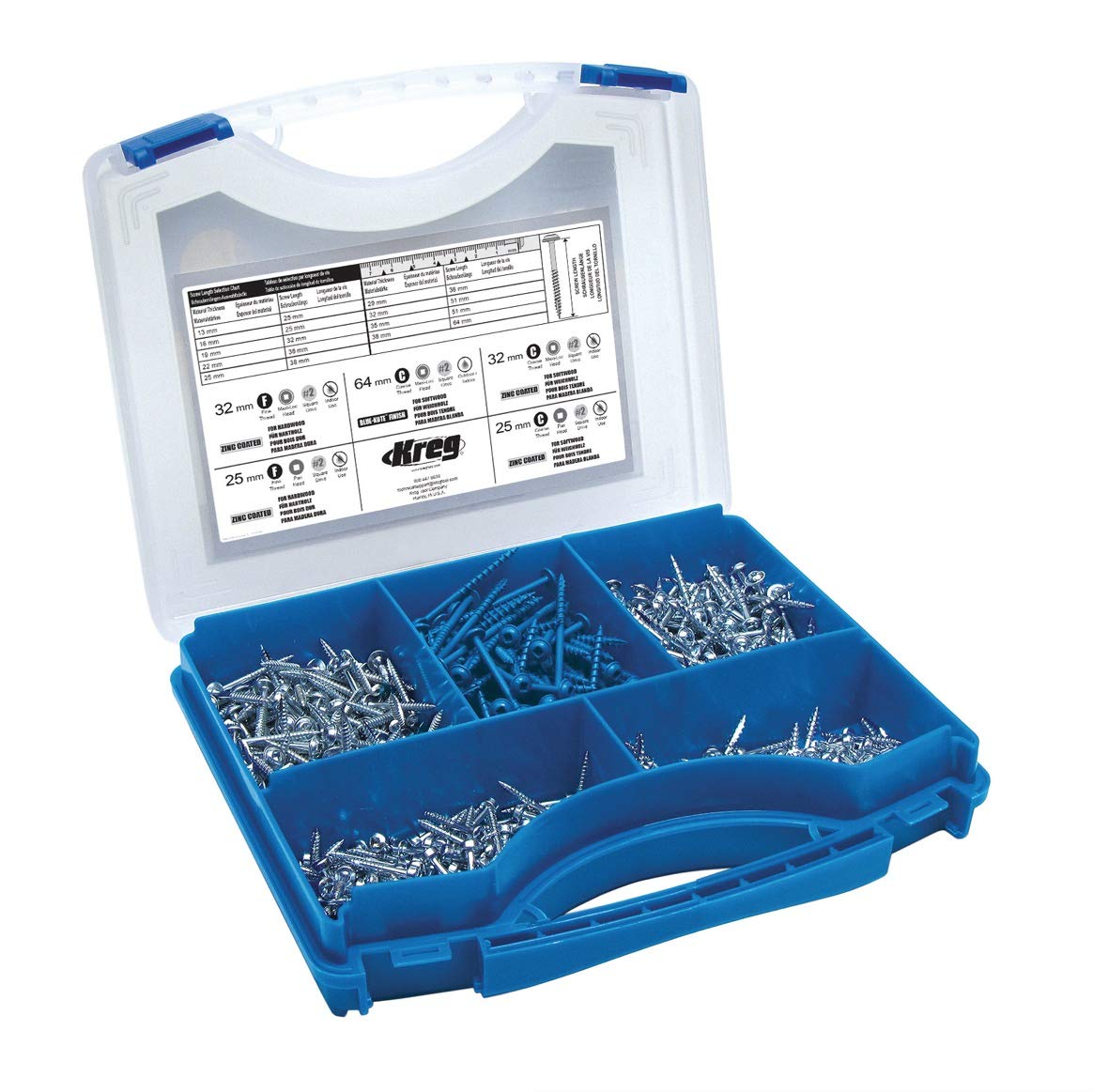 - Enthält fünf selbstschneidende wetterfeste Schraubensorten im robustem Tragekoffer.