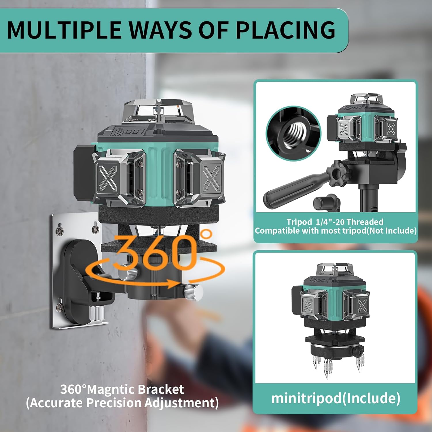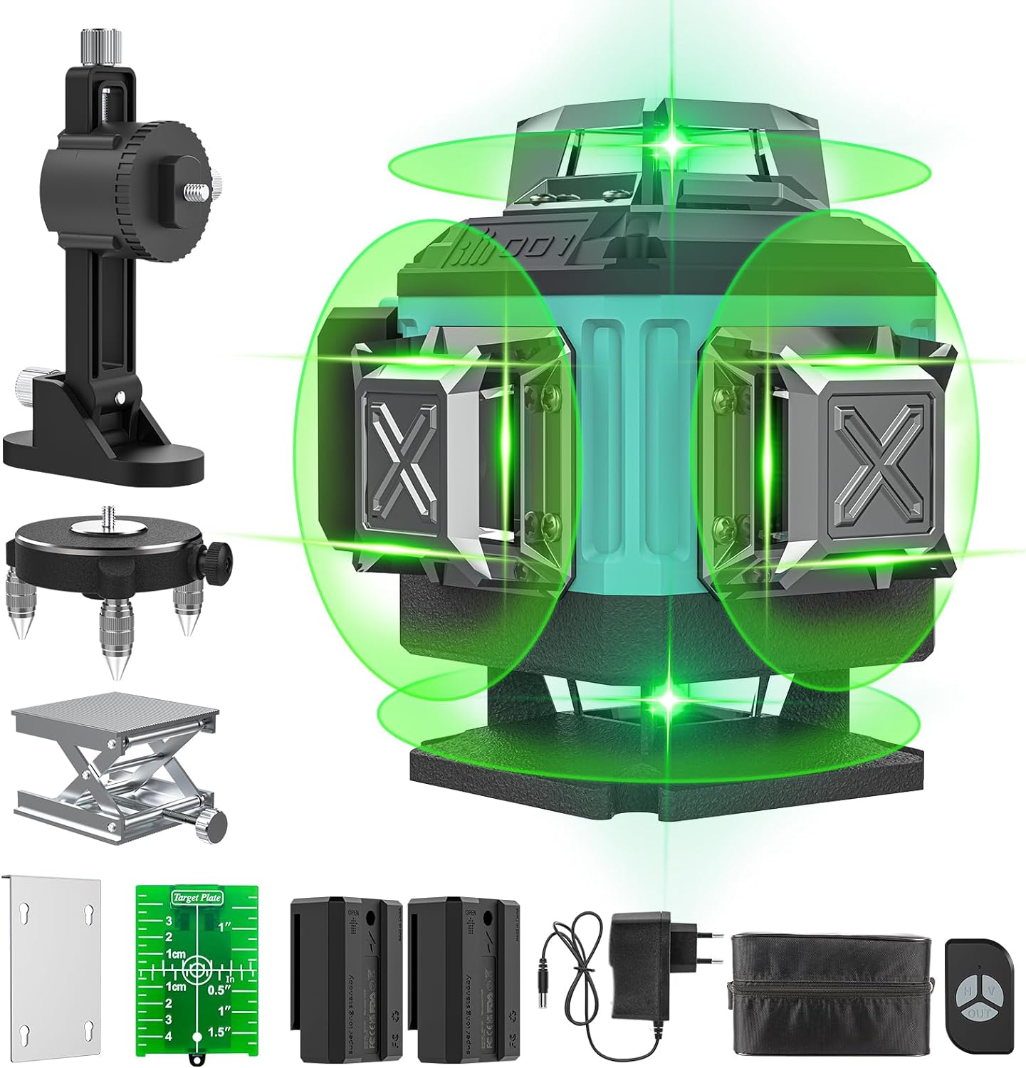 Kreuzlinienlaser Grün 4x360°, Laser Wasserwaage 16 Linien, Baulaser Kreuzlaser Linienlaser Selbstniv