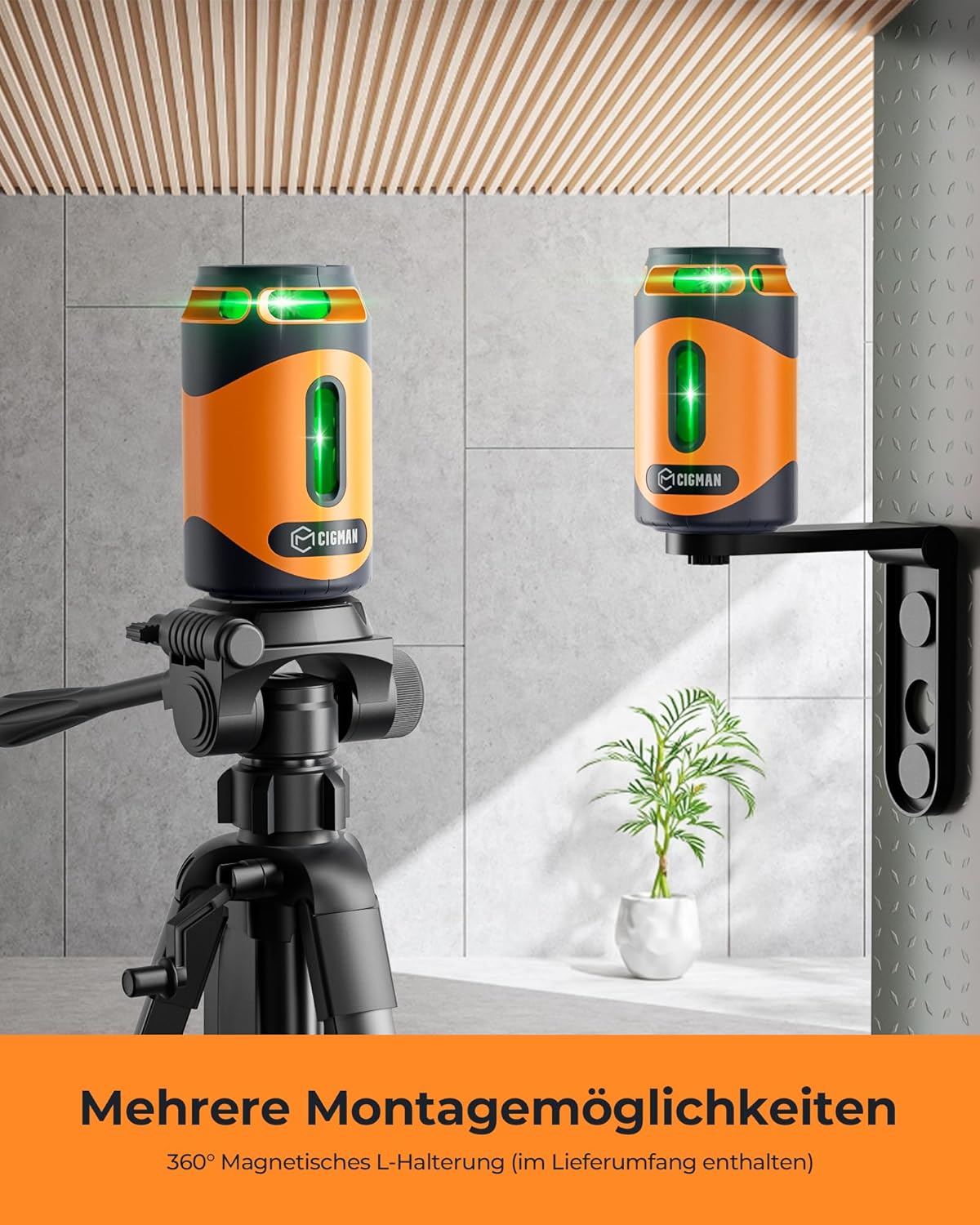 Kreuzlinienlaser mit Stativ, CIGMAN Kreuzlinienlaser Selbstnivellierend, Grüne Nivelliergerät Laser-