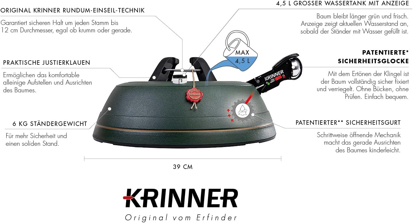 • Original vom Erfinder - stressfreie Weihnachten mit dem Krinner Christbaumständer ! Die Rundum-Einseil-Technik mit durchgehender Seilführung durch alle Halteklauen garantiert den gleichmässig festen Halt aller Klauen und somit den sicheren Stand ihres prächtig geschmückten Weihnachtsbaumes.