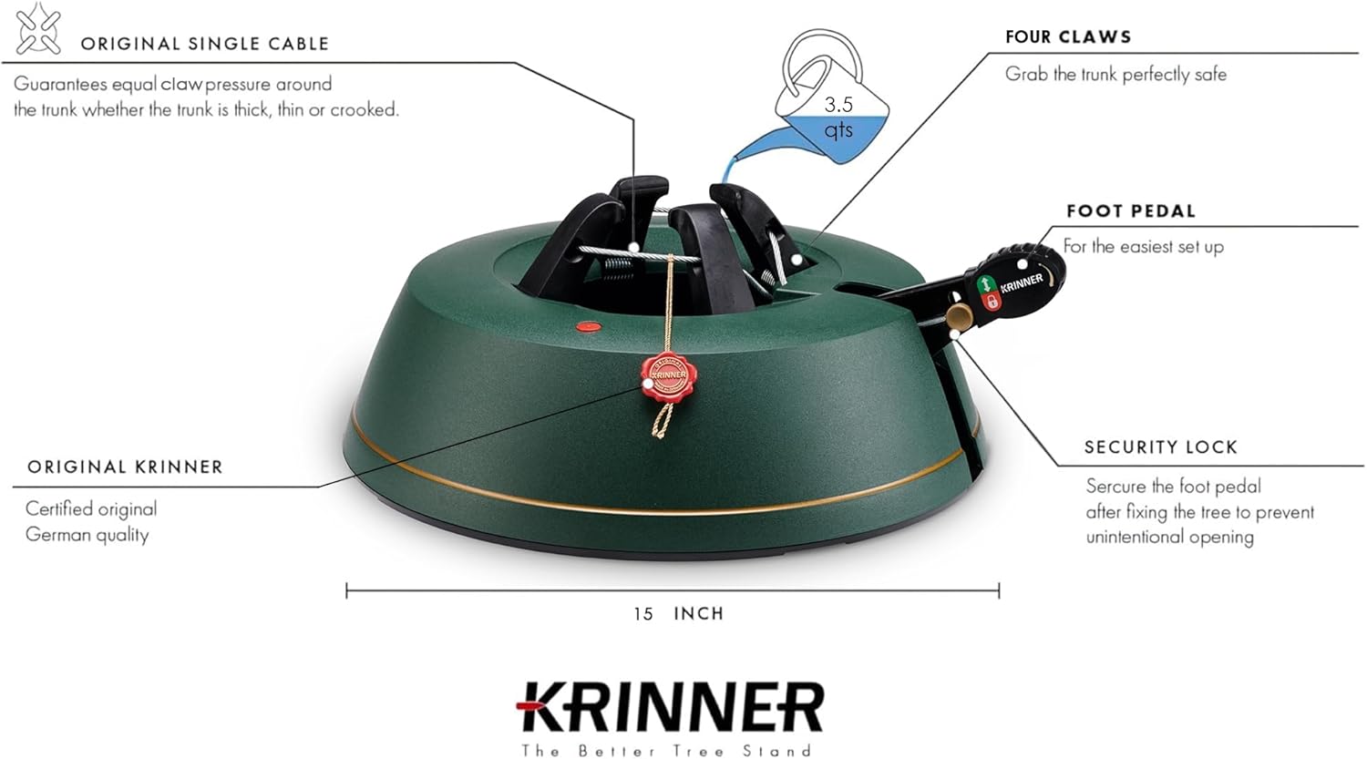 - Die KRINNER Rundum-Einseil-Technik garantiert bequemste Handhabung und stressfreie Weihnachten mit festem Halt ihres weihnachtlich geschmückten Christbaumes