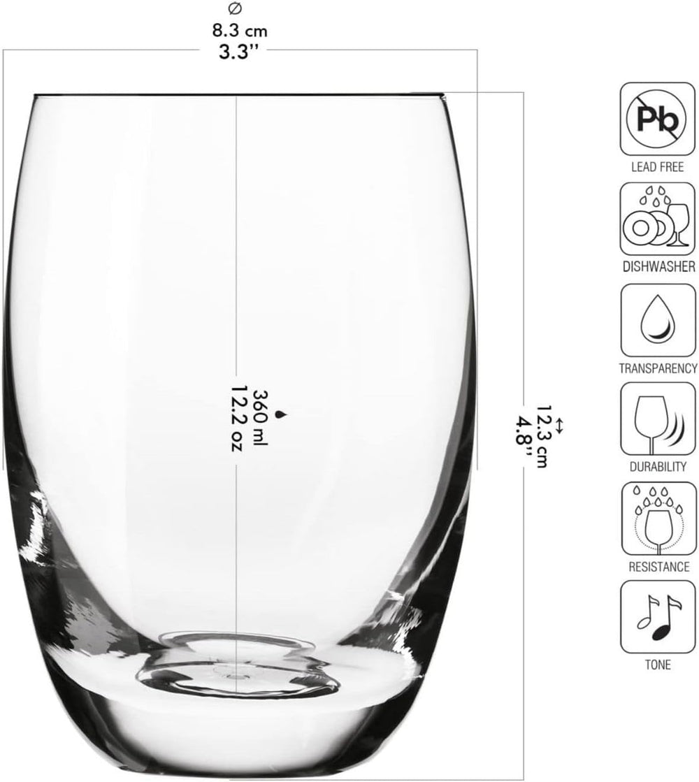 - 360 ML GLASVOLUMEN - Das transparente Glas hat eine Höhe von 123 mm und einen Durchmesser von 83 mm. Schlanke Form mit stabilem Boden und glattem Rand wird Liebhaber von geschmackvollem Minimalismus ansprechen.