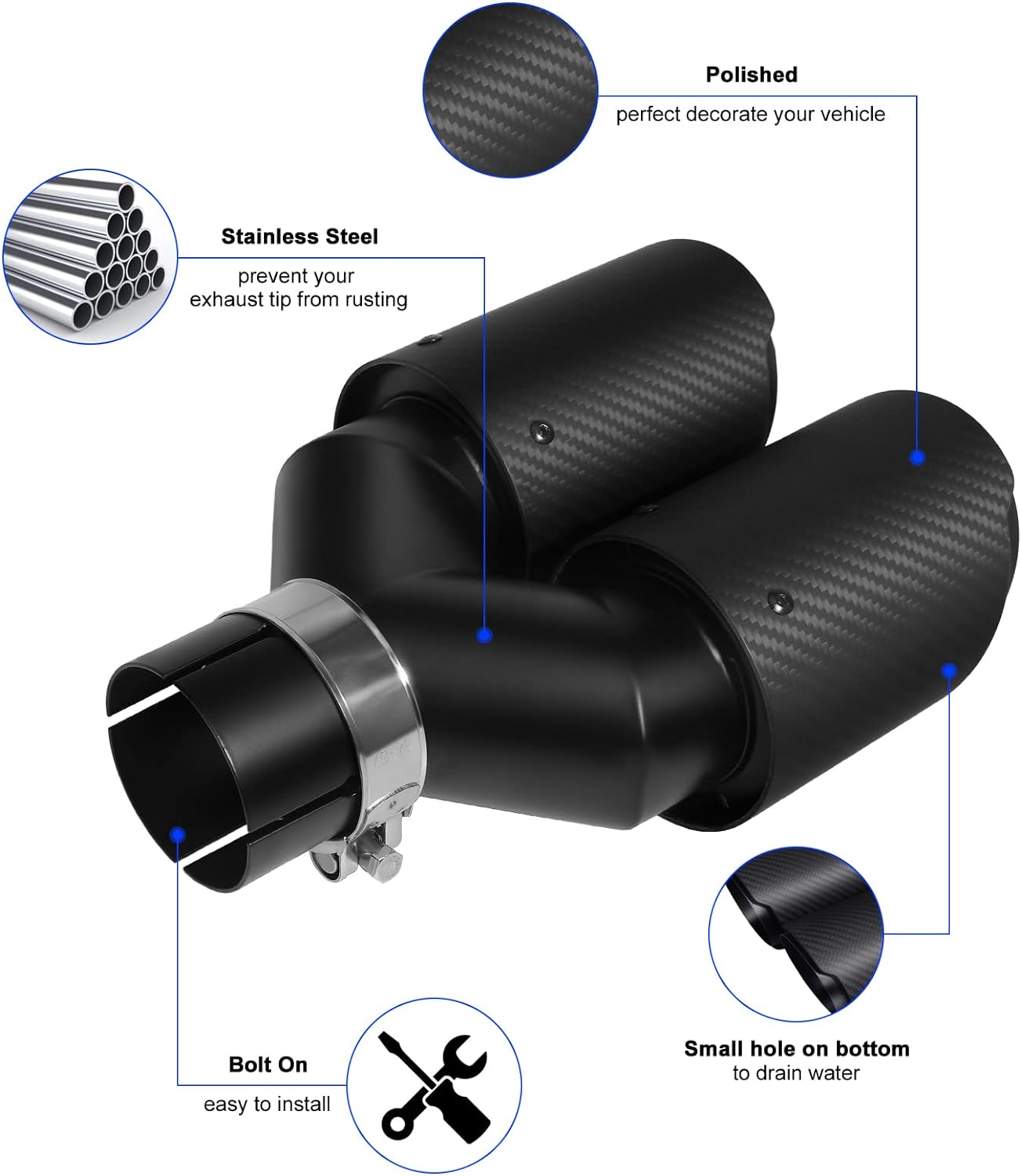 - ▶ 【Hervorragende Leistung】 Zwei Auslassöffnungen machen den Auspuff sanfter und die Leistung wird verbessert, was Ihnen ein angenehmes Fahrerlebnis bietet.