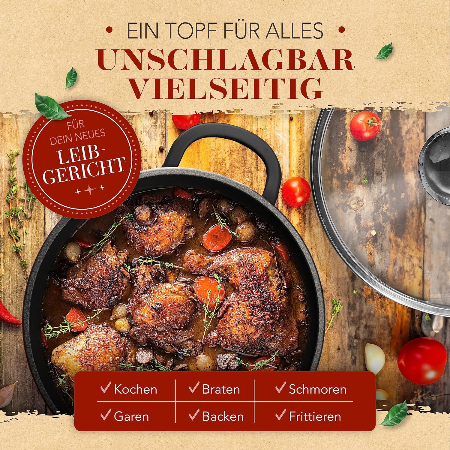 - KRUSTENZAUBER VERSPRECHEN - Als Deutsches Unternehmen mit Liebe zum Kochen stehen wir für hohe Qualität und besten Service. Sollte etwas mit Deinem Schmortopf Set nicht passen, sind wir immer für Dich da