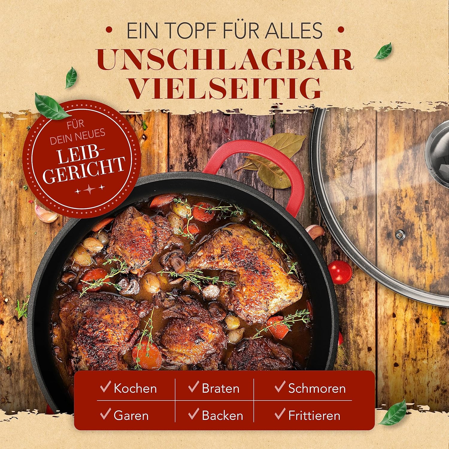 - KRUSTENZAUBER VERSPRECHEN - Als Deutsches Unternehmen mit Liebe zum Kochen stehen wir für hohe Qualität und besten Service. Sollte etwas mit Deinem Schmortopf Set nicht passen, sind wir immer für Dich da