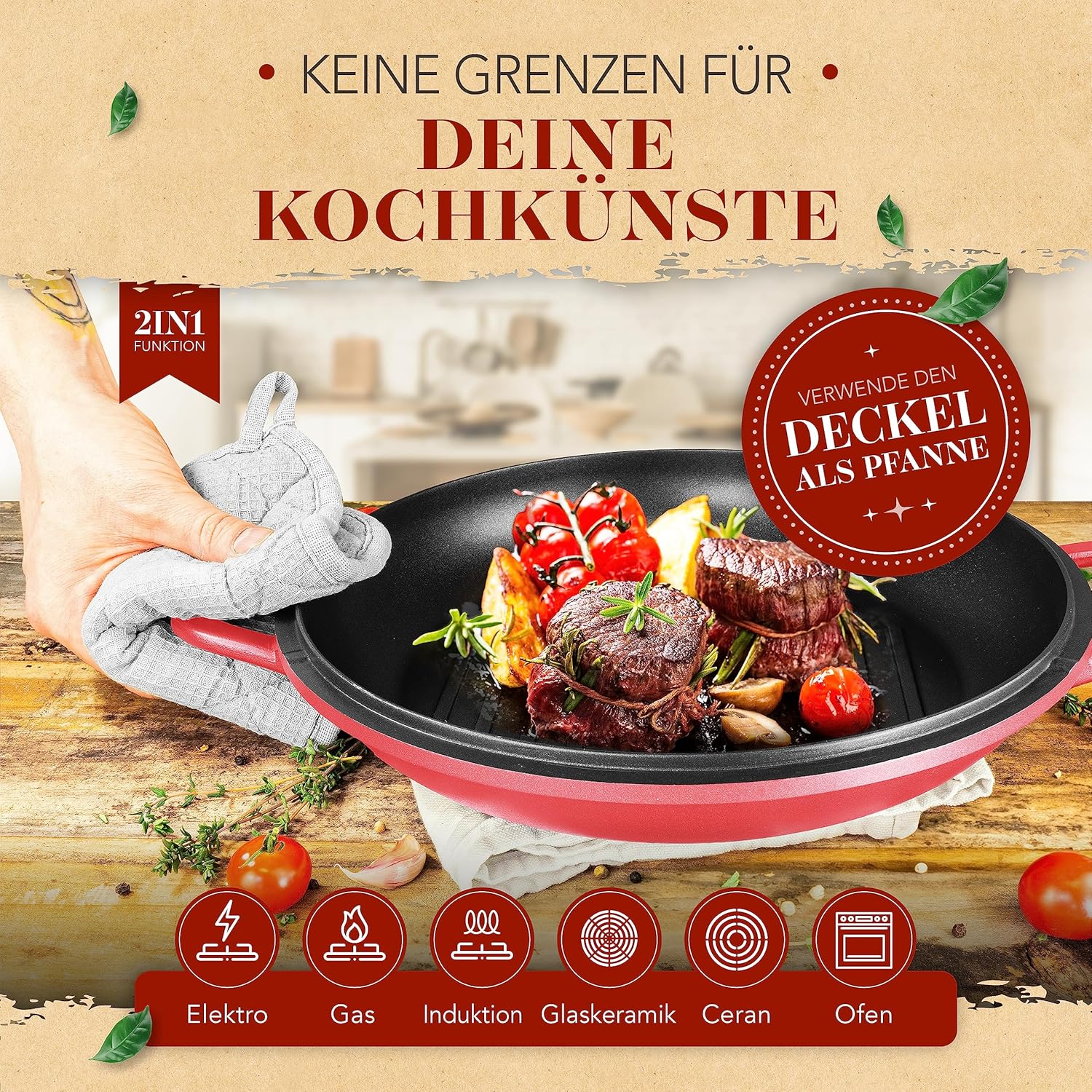 - FLEXIBEL EINSETZBAR - Der Topf ist backofengeeignet und perfekt für alle Herdarten, wie Gas, Elektro oder Induktion. Der Kochtopf mit den zwei Deckeln formen ein perfekte Set für Dein Kocherlebnis