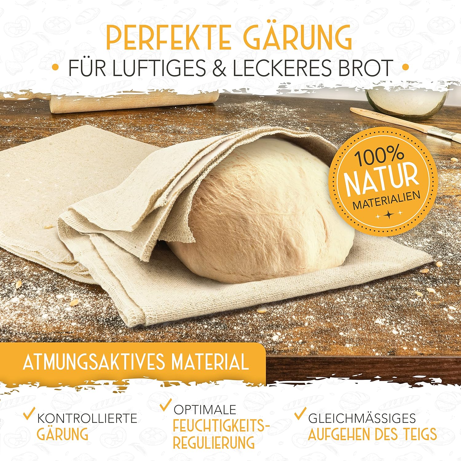 - FLUFFIGER TEIG - Dein Teig kann unter dem Bäckerleinen schön gehen und erhält die perfekte Konsistenz. Jedes Gärtuch ist aus Naturmaterial, 75x45cm gross und perfekt mit oder ohne Gärkorb