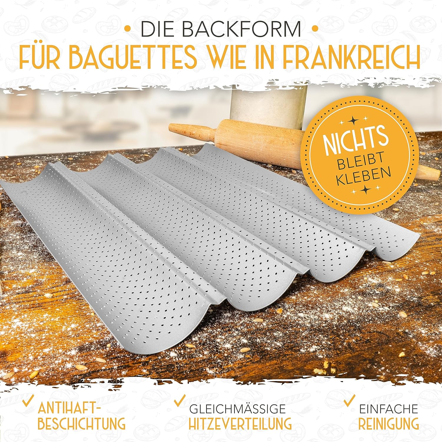 - ECHTES BACKERLEBNIS - Tauche ein ins Bäckerhandwerk und gestalte Dein Baguette ganz individuell mit dem Set aus antihaftbeschichteter Baguette Backform inkl. Bäckerleinen u. Bäckermesser