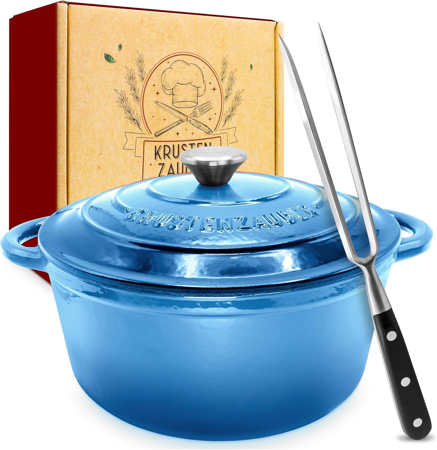 - FLEXIBEL EINSETZBAR - Der Gusseiserne Topf ist backofengeeignet und perfekt für alle Herdarten, wie Gas, Elektro oder Induktion. Der Kochtopf und die Fleischgabel aus Edelstahl formen ein perfekte Set
