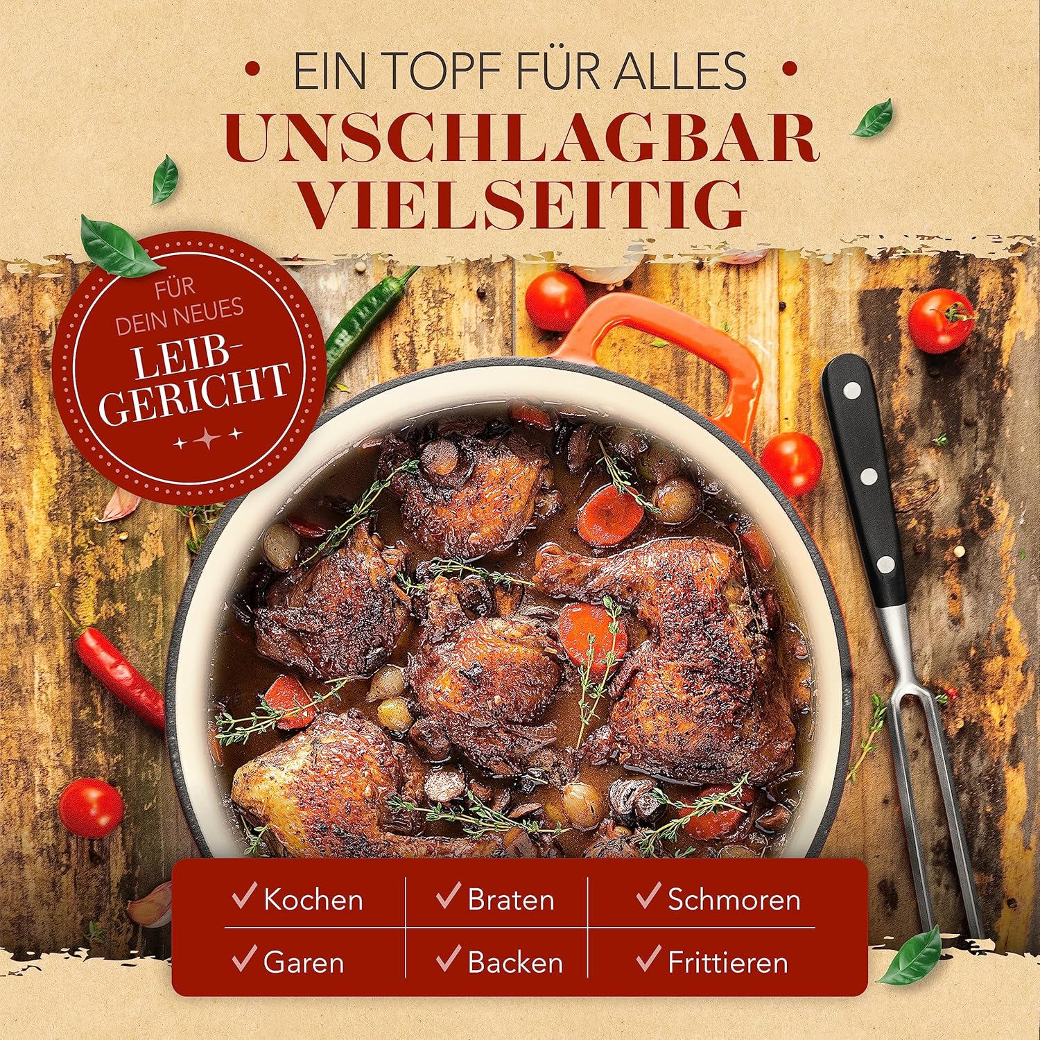 - FÜR UND MIT DEINEN LIEBSTEN - Verzaubere Deine Freunde und Familie mit leckeren Gerichten aus dem Gusstopf und mache Kochen und Essen wieder zum gemeinsamen Erlebnis. Ihr werdet es lieben