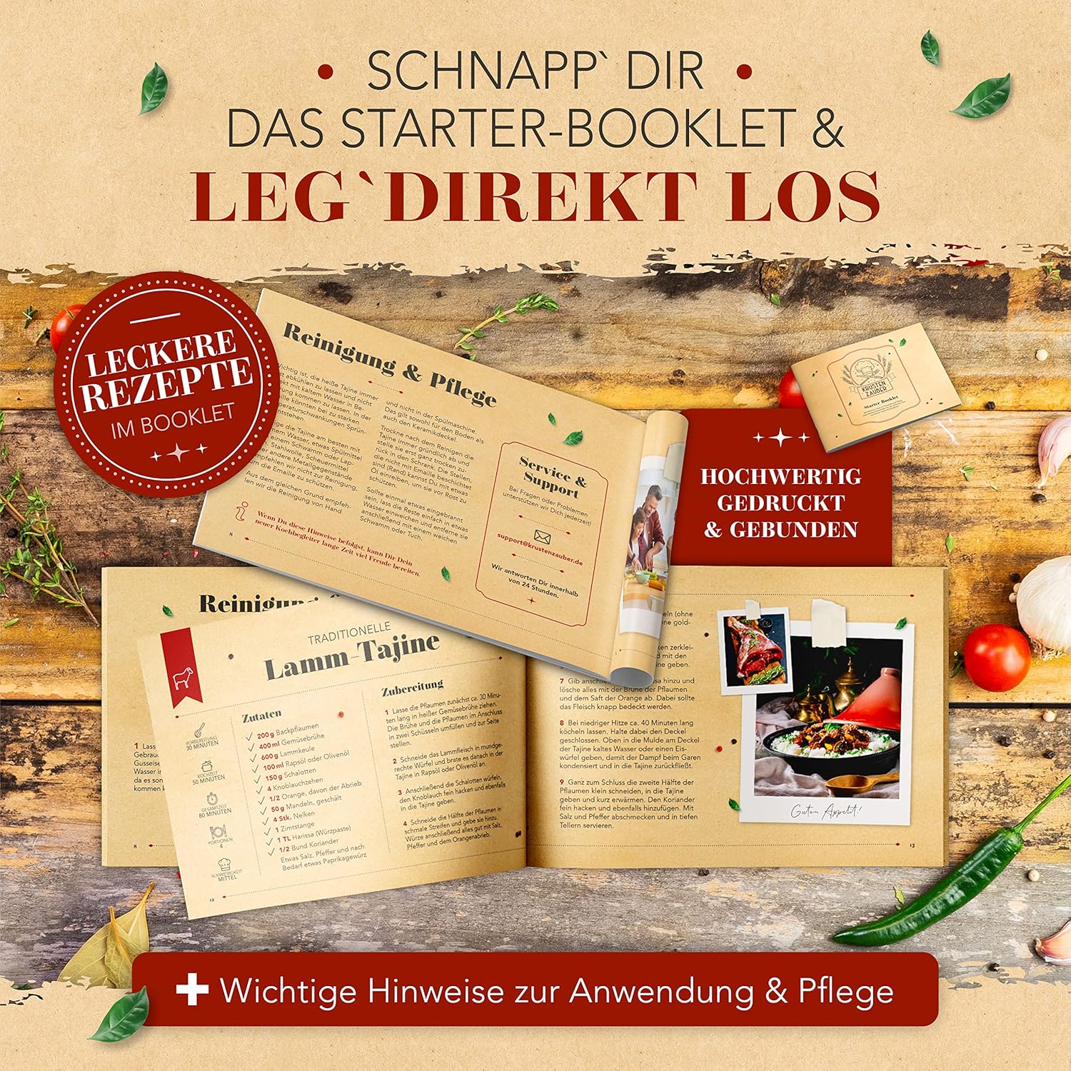 - KRUSTENZAUBER VERSPRECHEN - Als Deutsches Unternehmen mit Liebe zum Kochen stehen wir für hohe Qualität und besten Service. Sollte etwas mit Deiner Tajine Gusseisen nicht passen, sind wir immer für Dich da