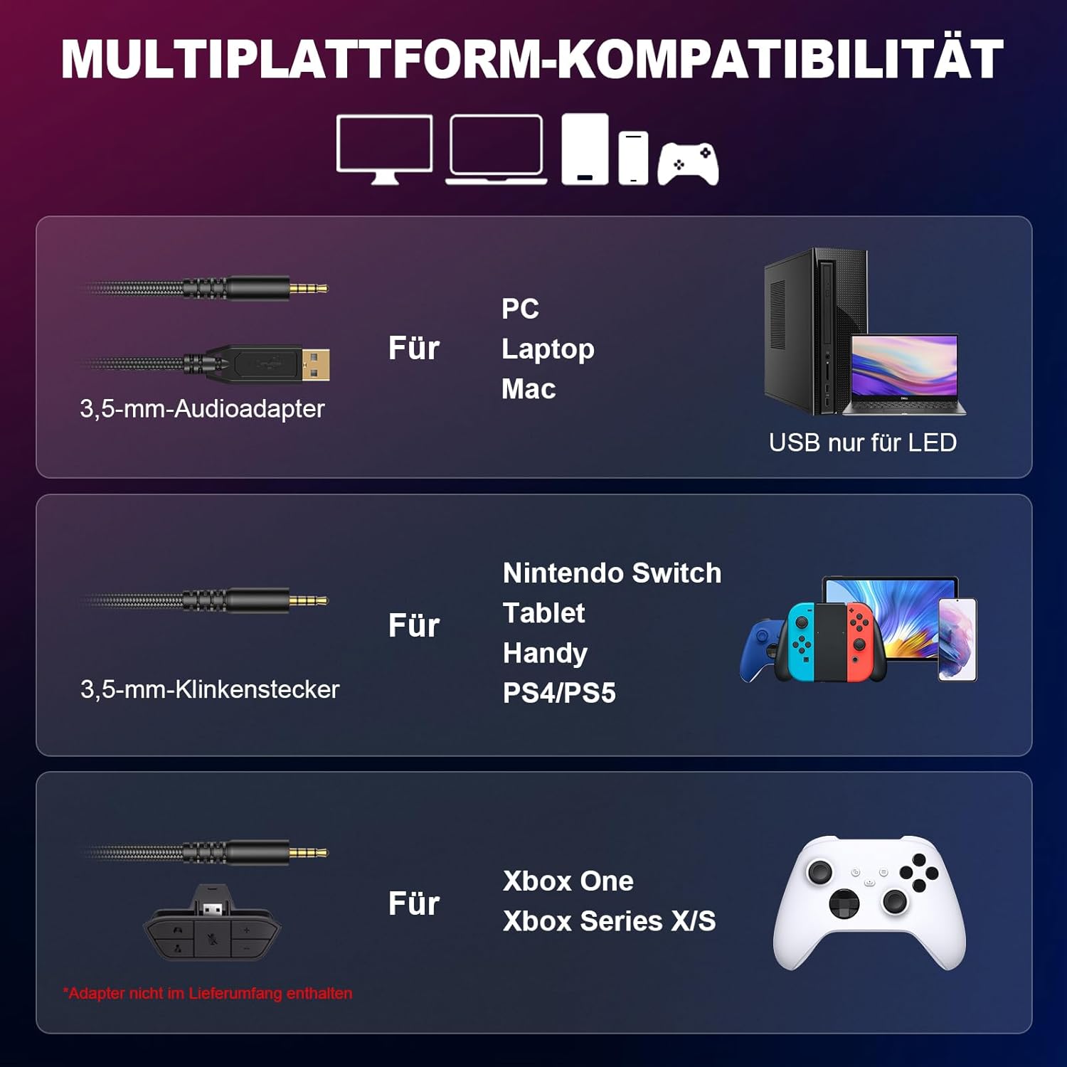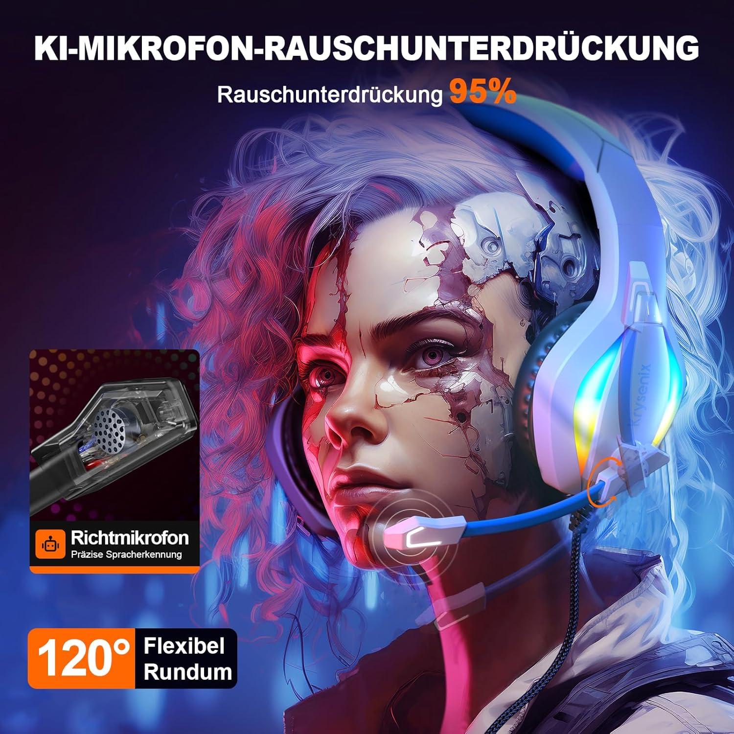 • 🎁 Professionelles und komfortables Design: Das Krysenix Gaming Headset kombiniert ein schlankes Design mit coolen Formen und lebendigen RGB-Lichtern. Es ist ein ideales Geschenk für Weihnachten, Geburtstage, und perfekt für Jungen und Mädchen,