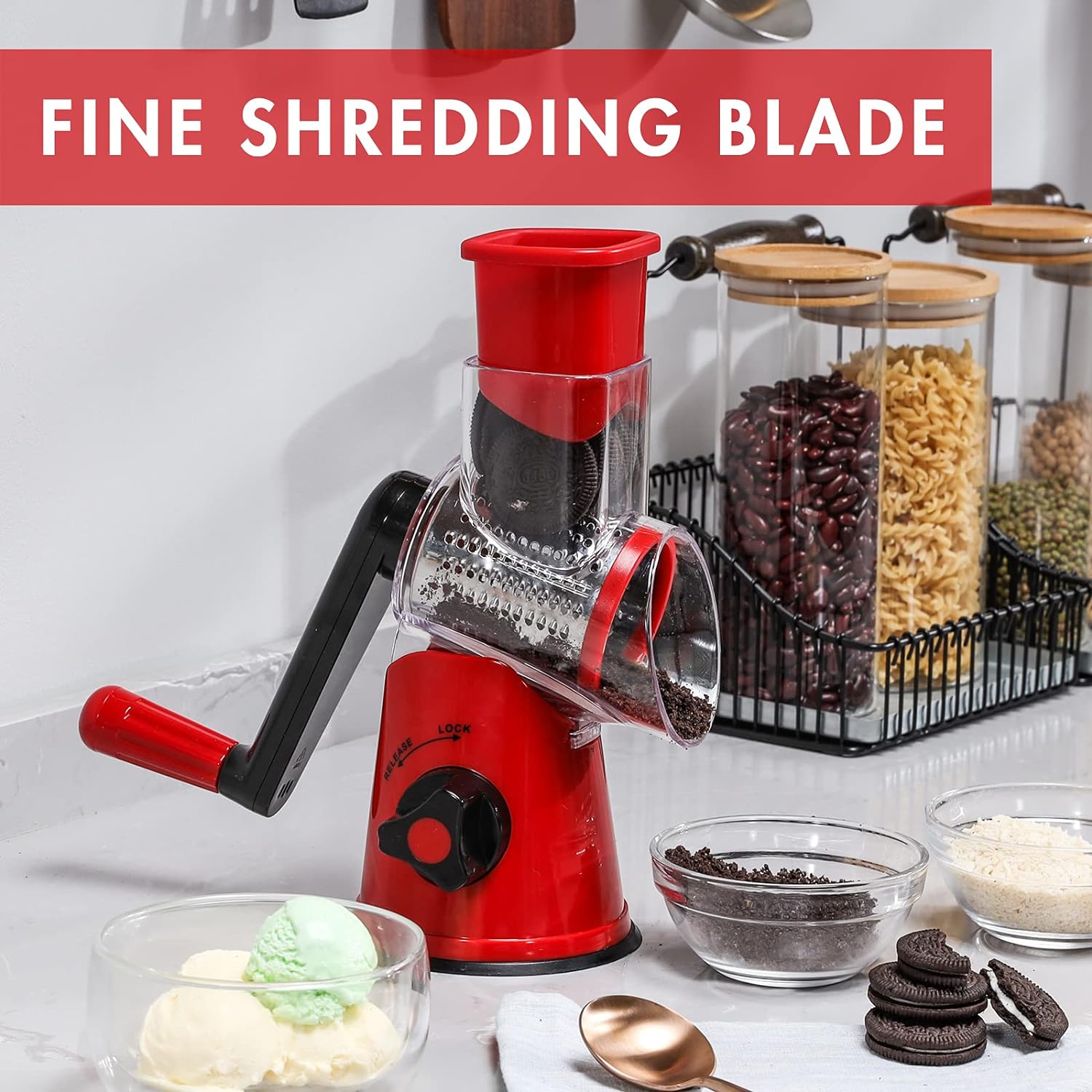 - 🧀Zeitsparend: Die Käsereibe enthält 3 scharfe Trommelklingen aus 430 Edelstahl, die schneller schneiden und länger sättigen können als ein Messer. Die Käsereibe ermöglicht es Ihnen, das Essen bequem und schnell zuzubereiten und hilft Ihnen,