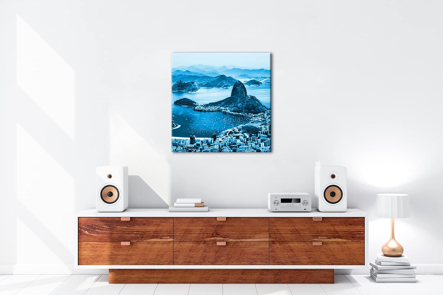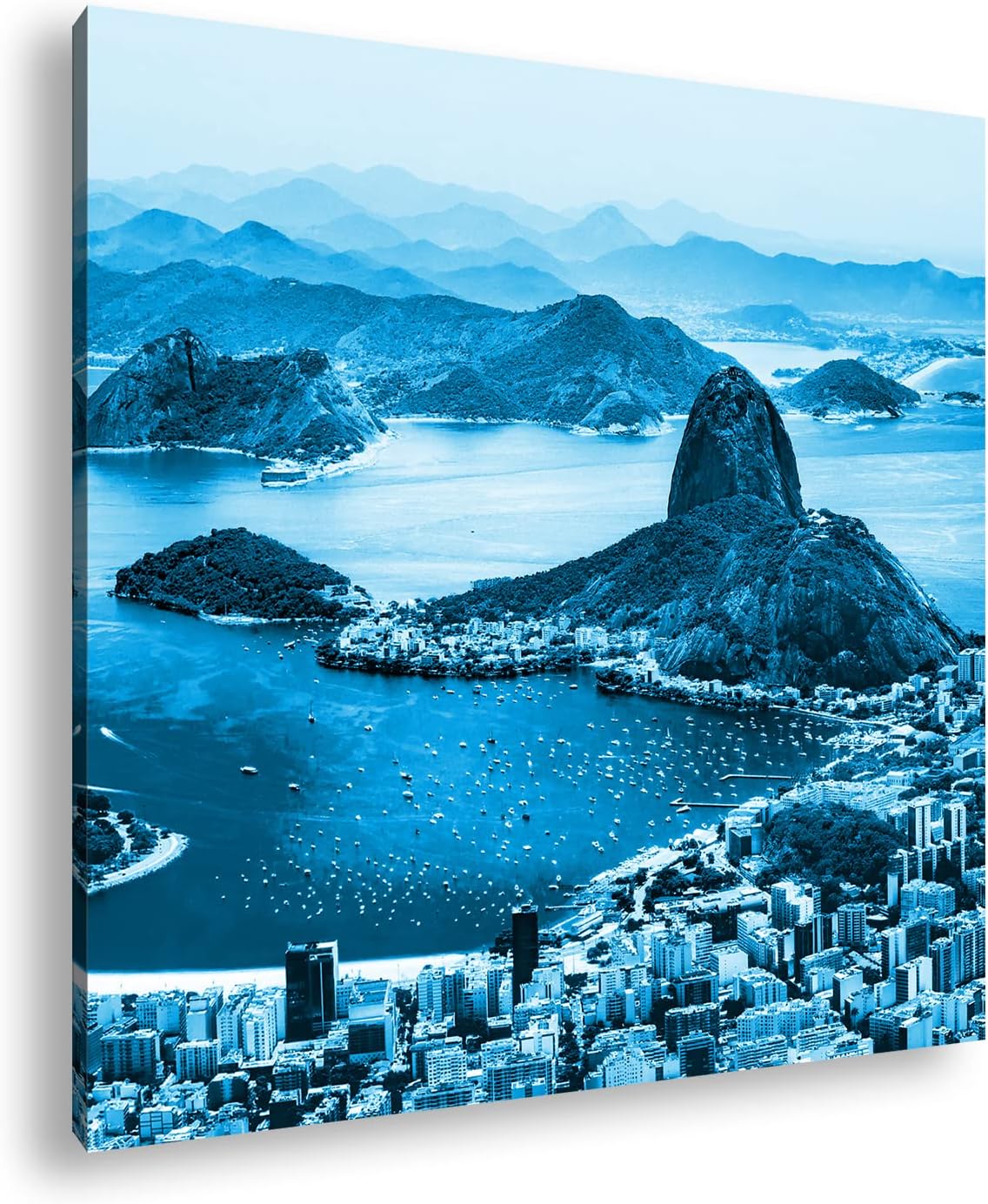 Küste von Rio de Janeiro Format: 70x70 Effekt: Monocrome Blau als Leinwand, Motiv fertig gerahmt auf