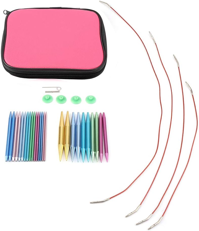 - 【Leicht und Tragbar】Austauschbare stricknadeln set kommt mit Tragetasche, in der alle mitgelieferten Nadeln und Zubehörteile ordentlich aufbewahrt werden können, dedizierte Reissverschluss Aufbewahrungstasche, leicht zu tragen und Lagerung.