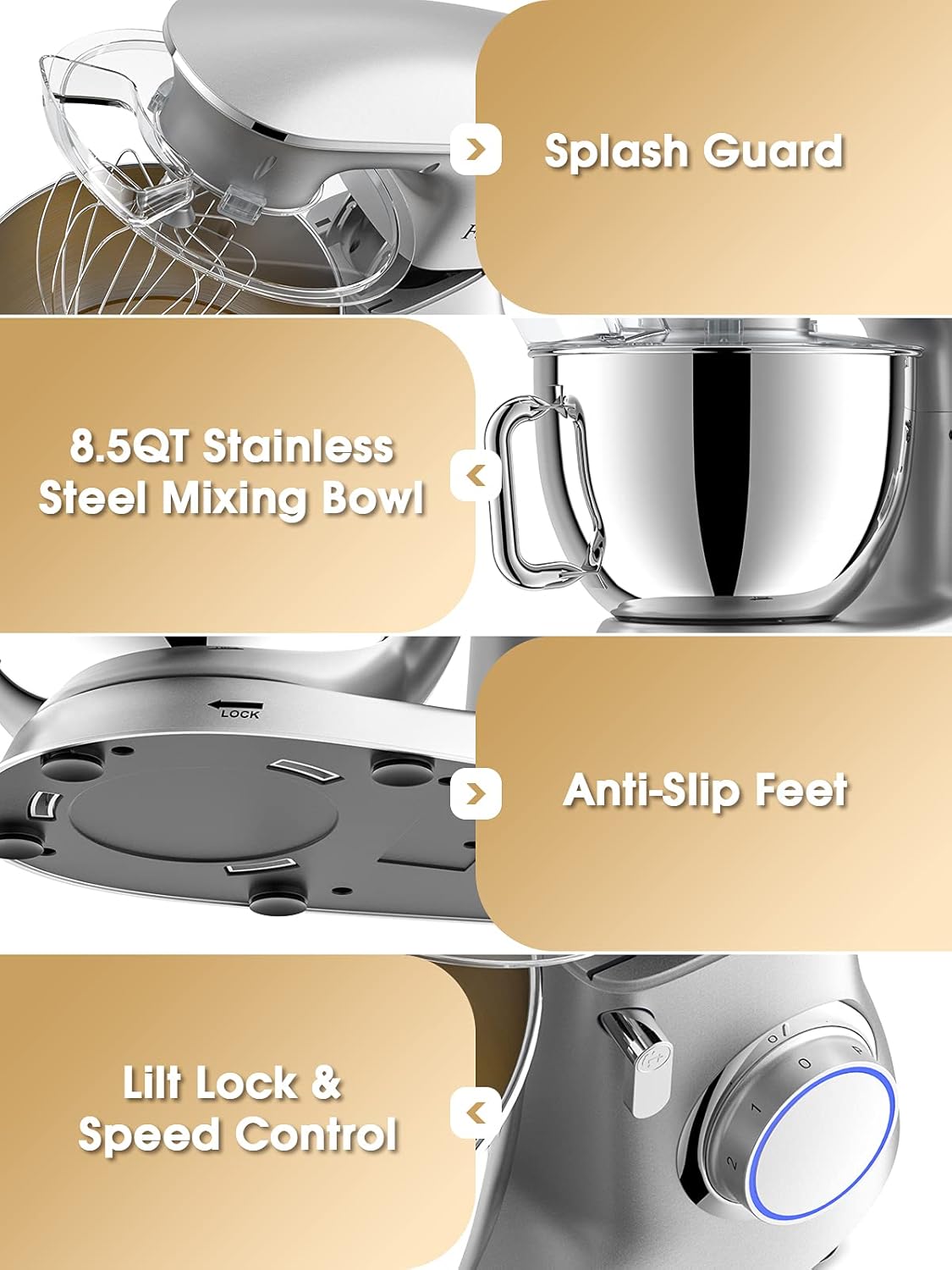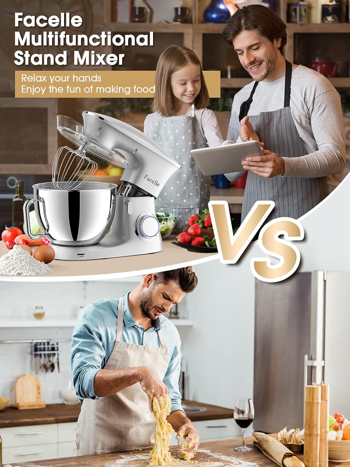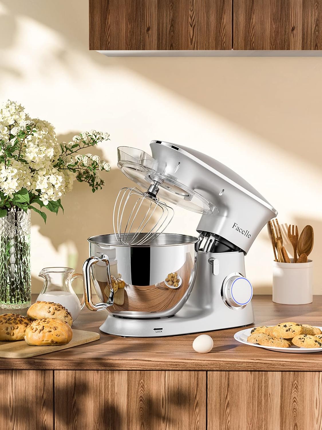 - 🍰【Leistungsstarker 1500-W-Motor】 Der elektrische Küchenmixer von Facelle verfügt über einen hochwertigen Handmotor mit 1500W Stromverbrauch, eine lange Lebensdauer und eine starke Leistung, um die meisten Ihrer Anforderungen an einen