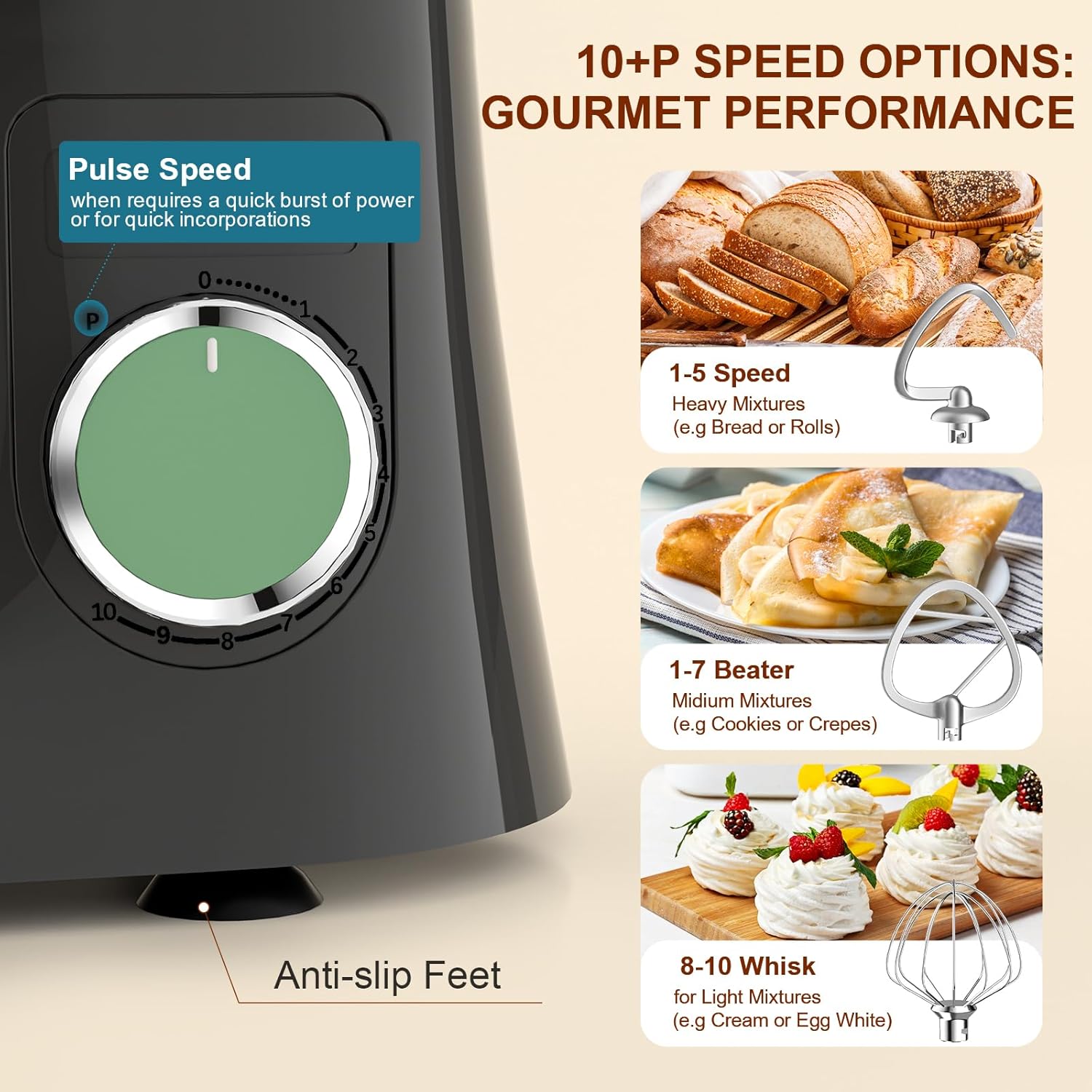 - ★ 2025 NEUER LEISTUNGSSTARKER KÜCHENMASCHINE: Facelle knetmaschine hat eine leistungsstarke Leistung von 1500 W, einen präzisen 10+P-Geschwindigkeitsregler und eine Planetenrührfunktion zum gründlichen Mischen von Brotteig, dicken Teigen, Baisers
