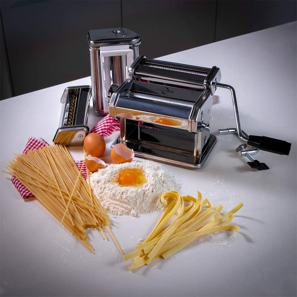 - VERSCHIEDENE AUFSÄTZE: Ob Spaghetti, Tagliolini, Tagliatelle, Lasagneblätter oder die Verwendung als Teigpresse den auswechselbaren, weiteren Aufsätzen ist alles möglich!