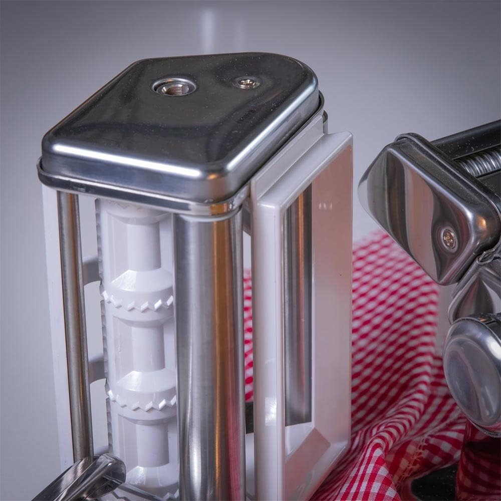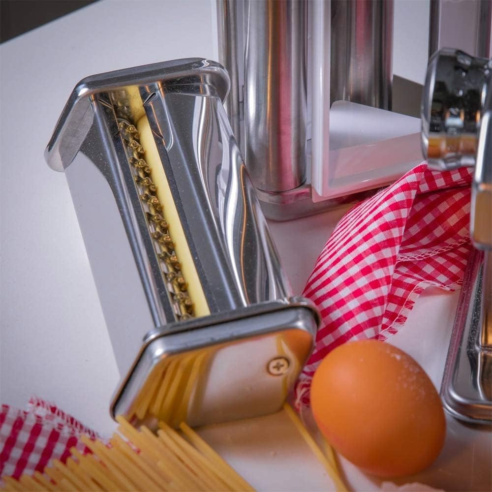 - MATERIAL & FEATURES: Hochwertiger, rostfreier Edelstahl sorgt für Langlebigkeit und eine angenehme Haptik. Der Aufsatz lässt sich schnell und ohne Aufwand an der Pastamaschine anbringen oder austauschen.