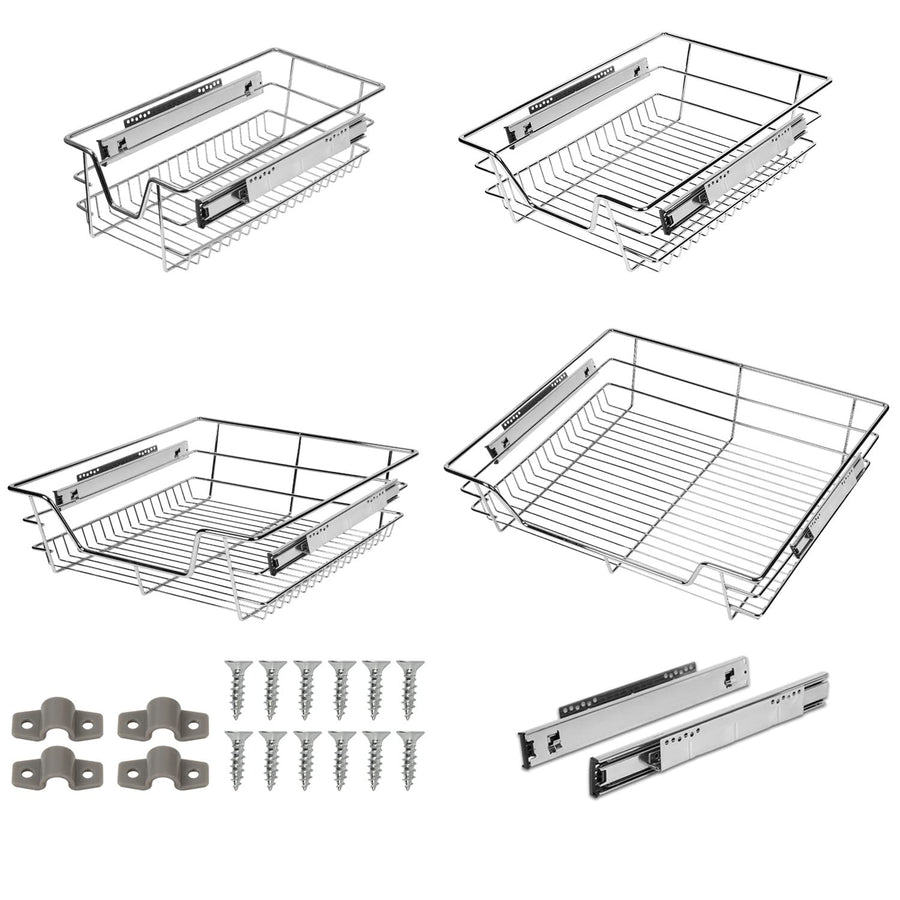 - 【Hohe Qualität】Die Korbauszüge bestehen dabei aus verchromten Metall mit verzinkten Führungsschienen. Die Teleskop-Schubladen lassen sich dabei komplett ausziehen, bleibt immer sicher und stabil.