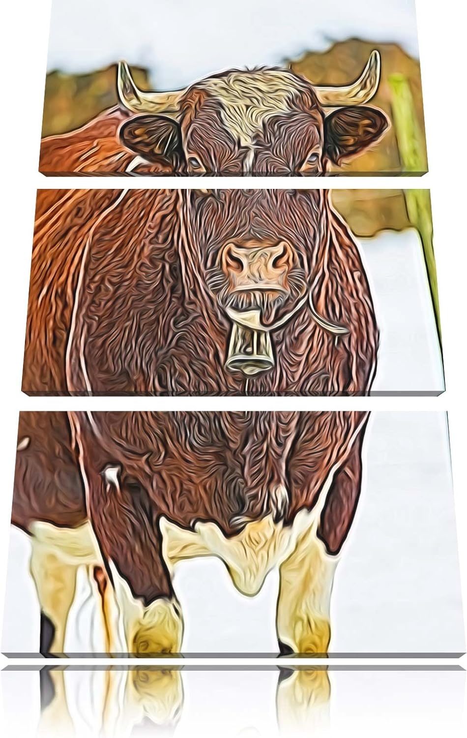 Kuhbullen in Schneelandschaft Spezial 3-Teiler Leinwandbild 120x80 Bild auf Leinwand, XXL riesige Bi