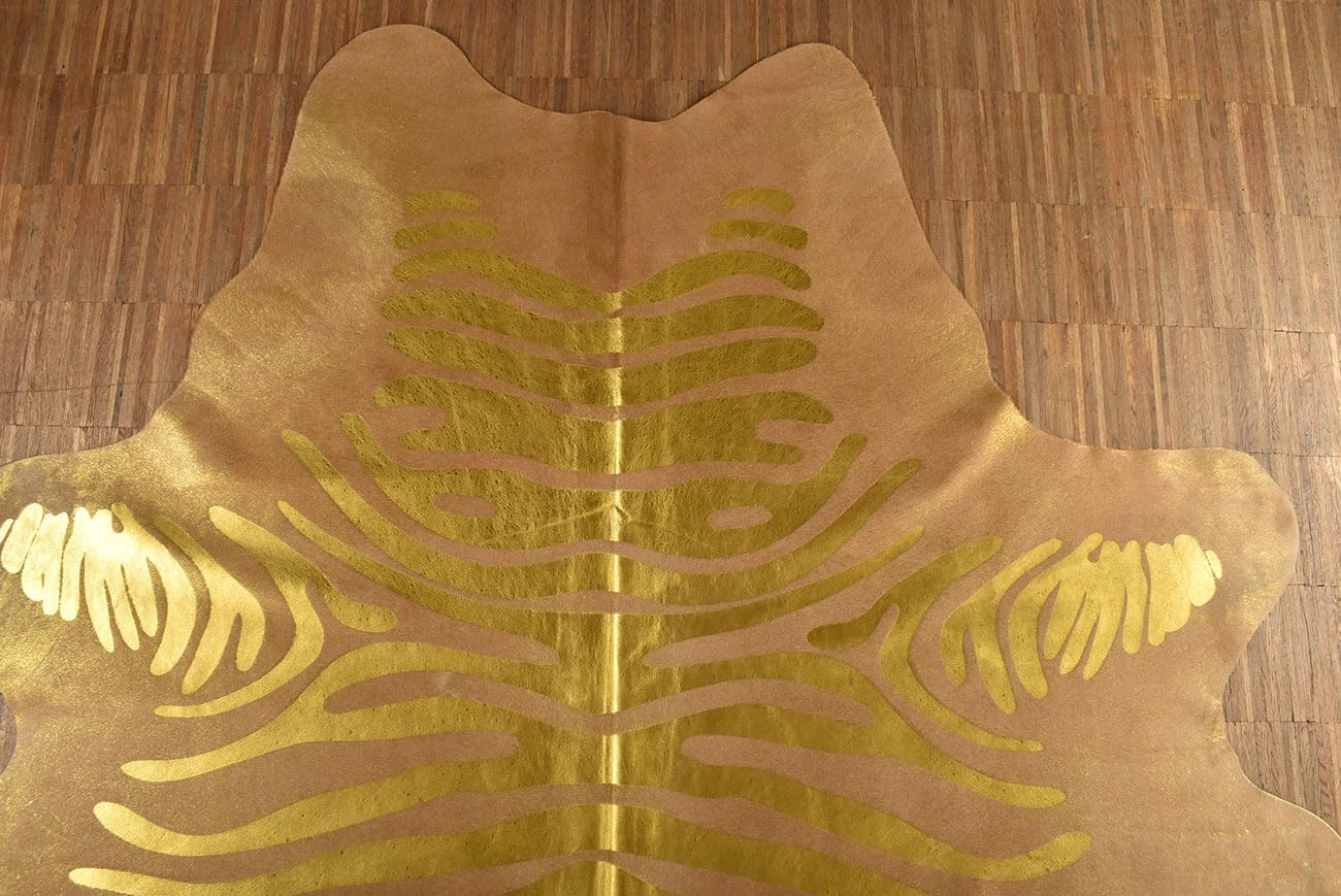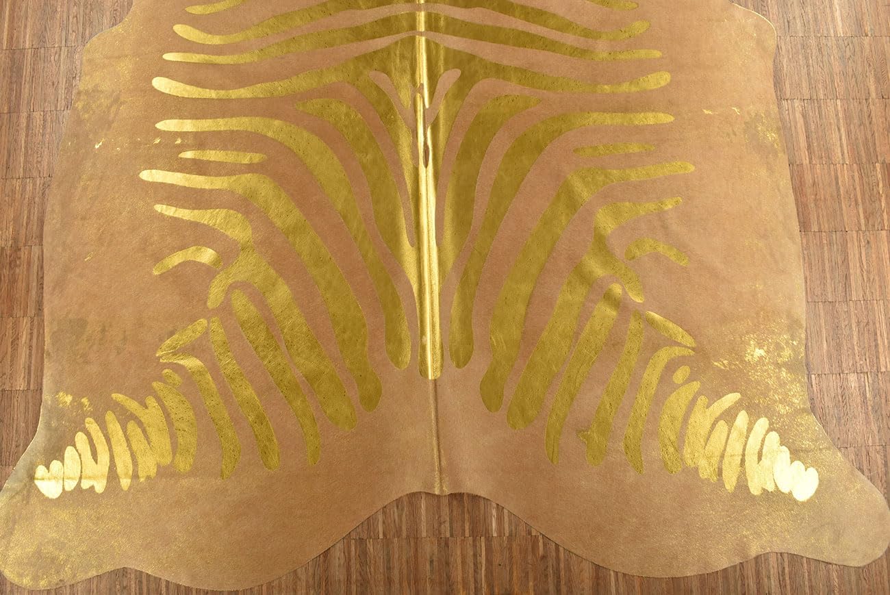 Kuhfell Stierfell Teppich Zebra Gold Devore ca. 210 x 180 cm aus Brasilien Kuhfell mit Zebra Prägung