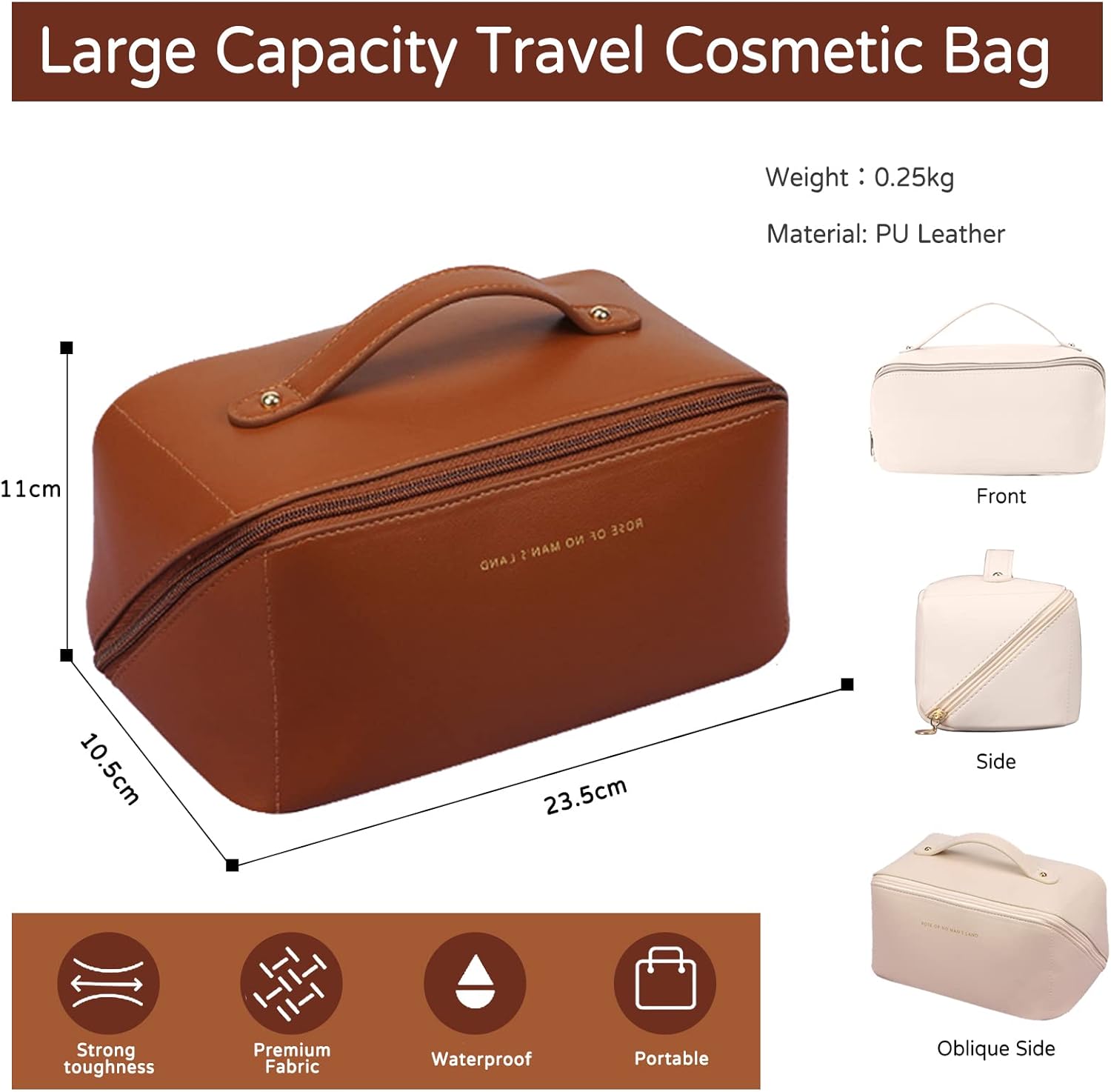 - ✅【Premium-Material】Der kosmetische Beutel besteht aus hochwertigem PU-Lederstoff, das wasserdicht und langlebig ist. Diese Make -up -Tasche mit grosser Kapazität verfügt über ein festes und tragbares Griffdesign, das langlebig und leicht zu