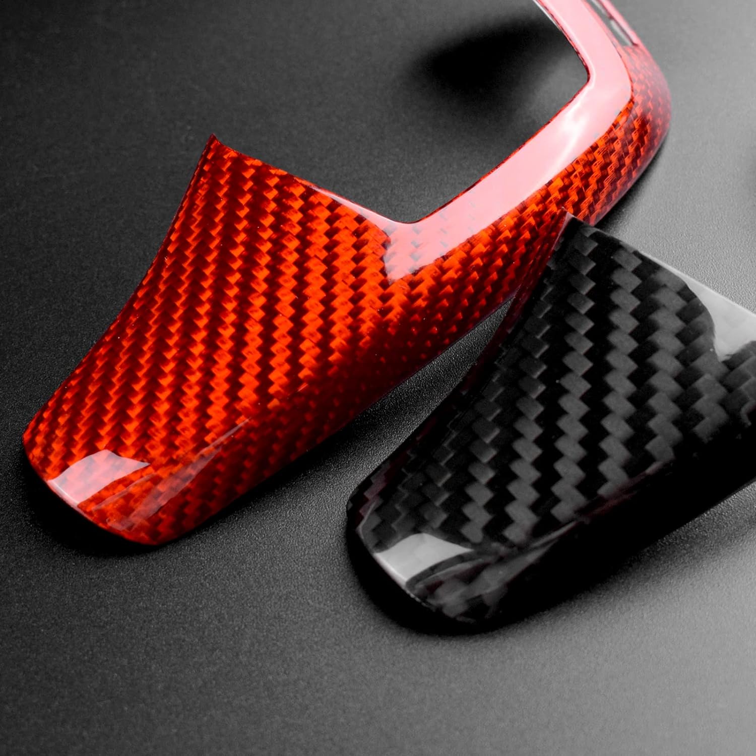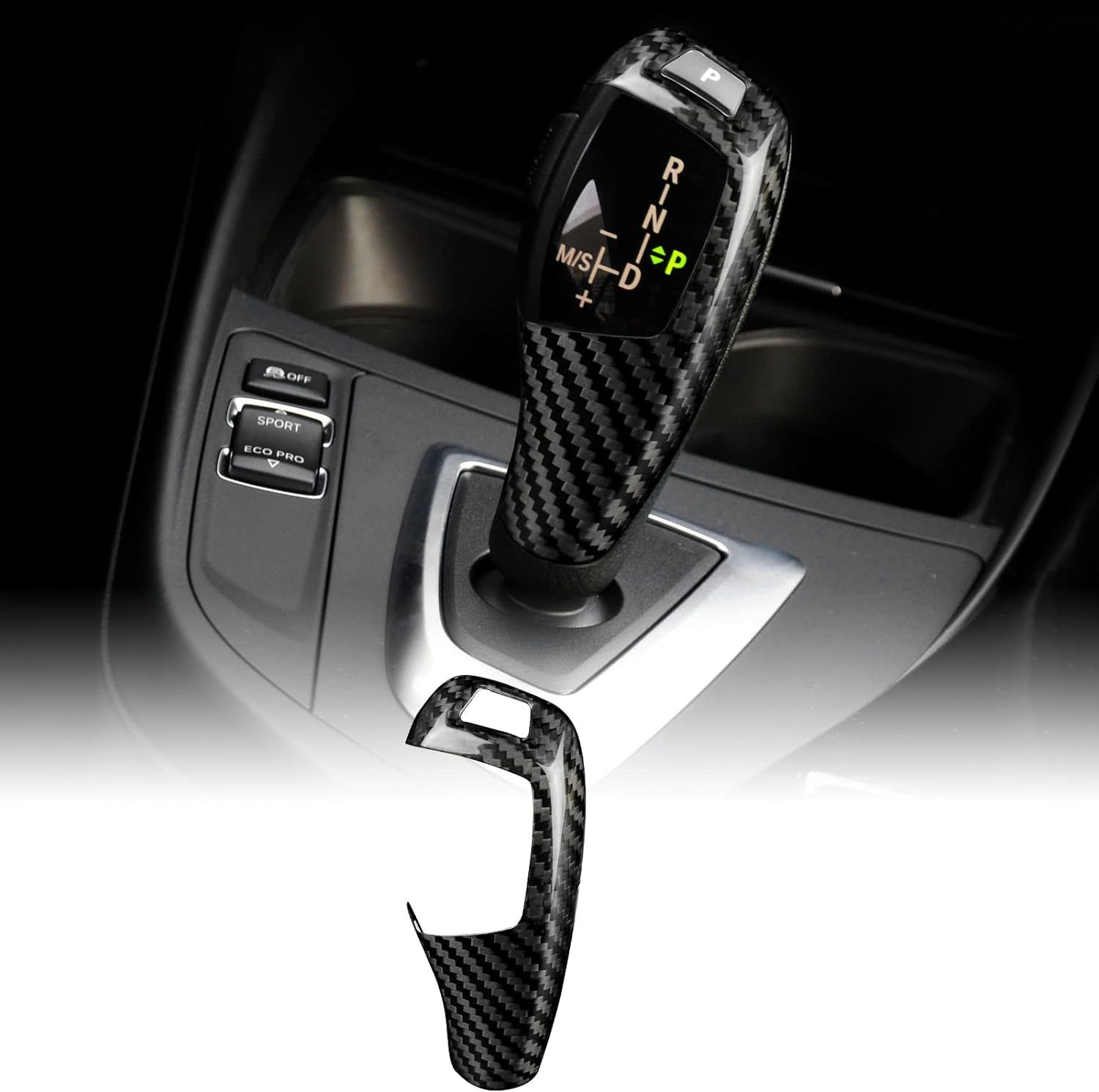 - Hohe Qualität --- Der Auto Schalthebelknauf Getriebegriff Abdeckung besteht aus hochwertigem Kohlefasermaterial (kein ABS-Material) mit schönen Texturen in Aussehen und Berührung.
