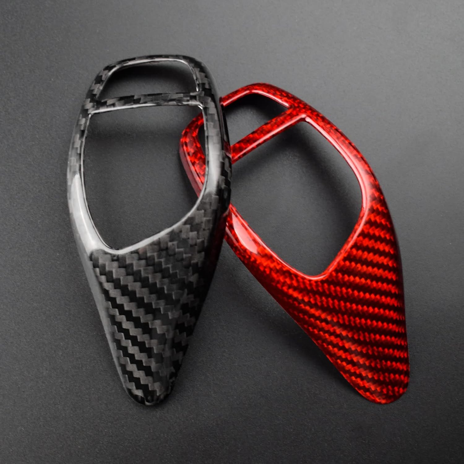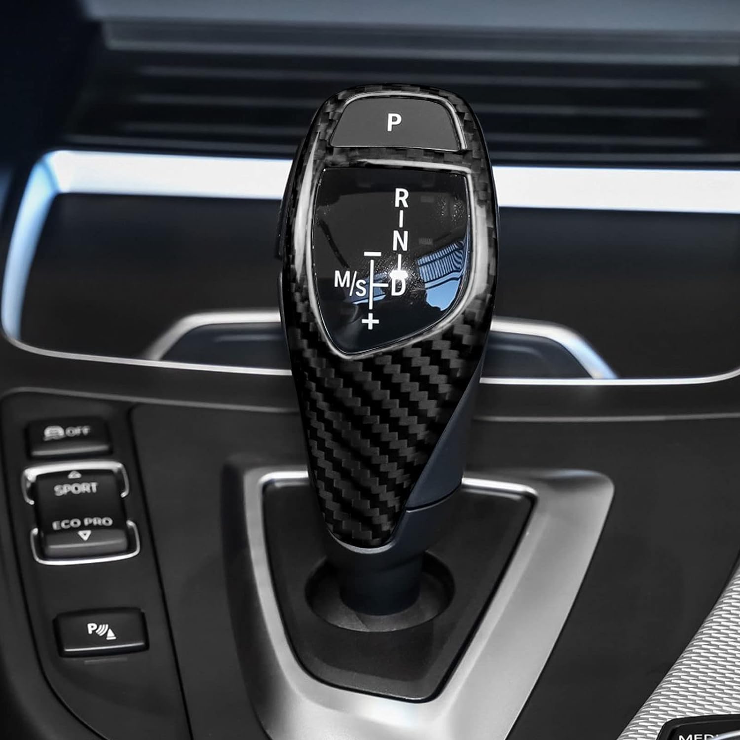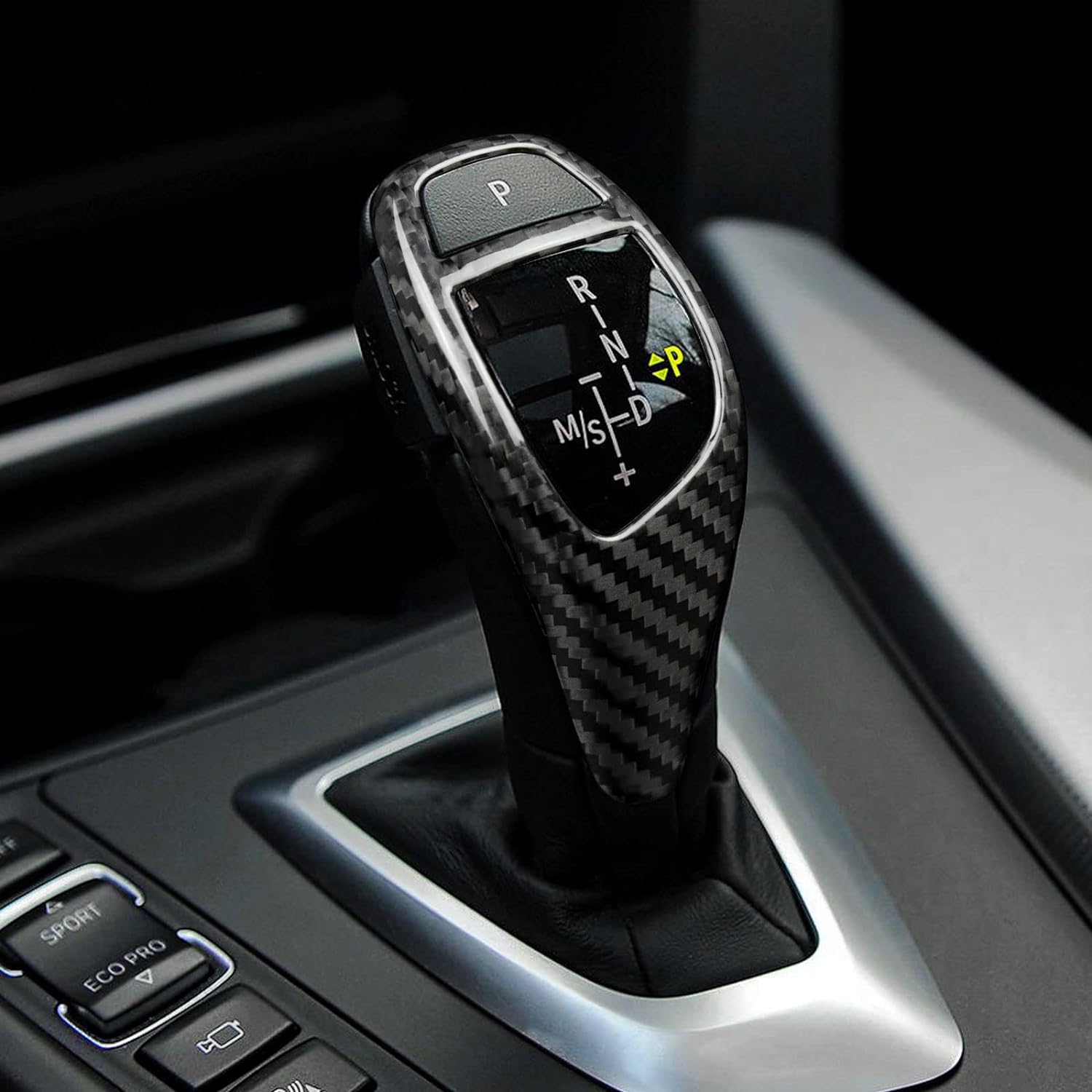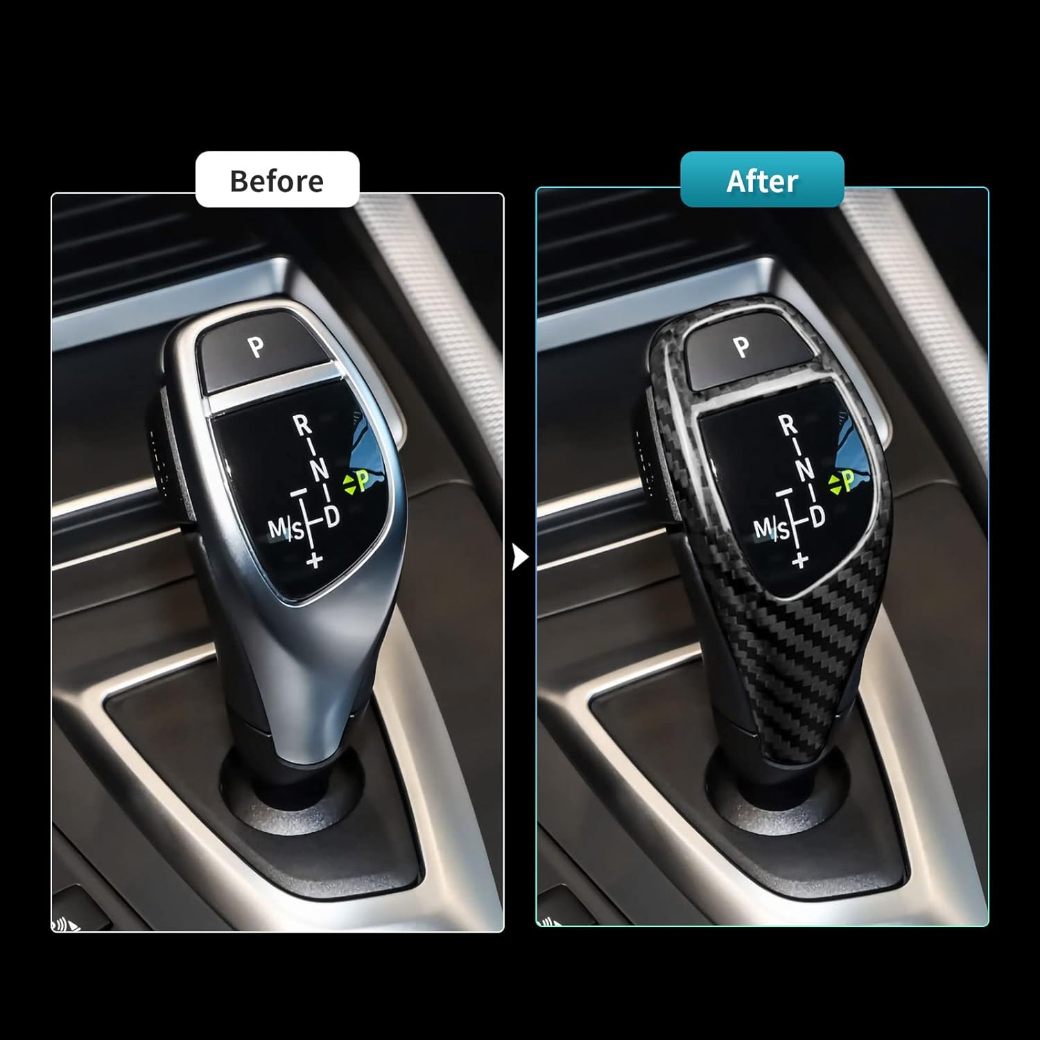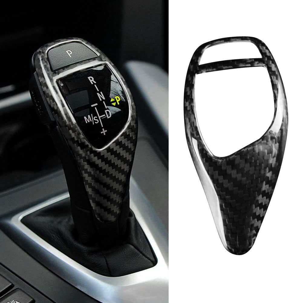 - Hohe Qualität --- Der Auto Schalthebelknauf Getriebegriff Abdeckung besteht aus hochwertigem Kohlefasermaterial (kein ABS-Material) mit schönen Texturen in Aussehen und Berührung.