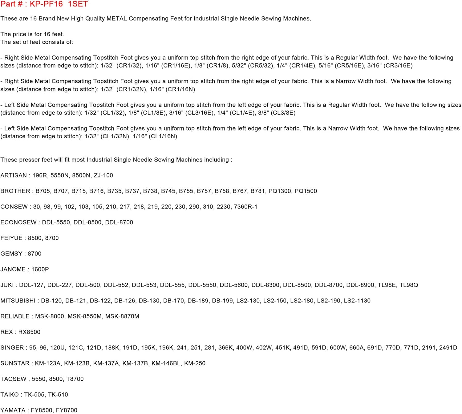 - 16pieds Gummi Metall für Nähmaschinen von industriellen zu Nadel einfach.