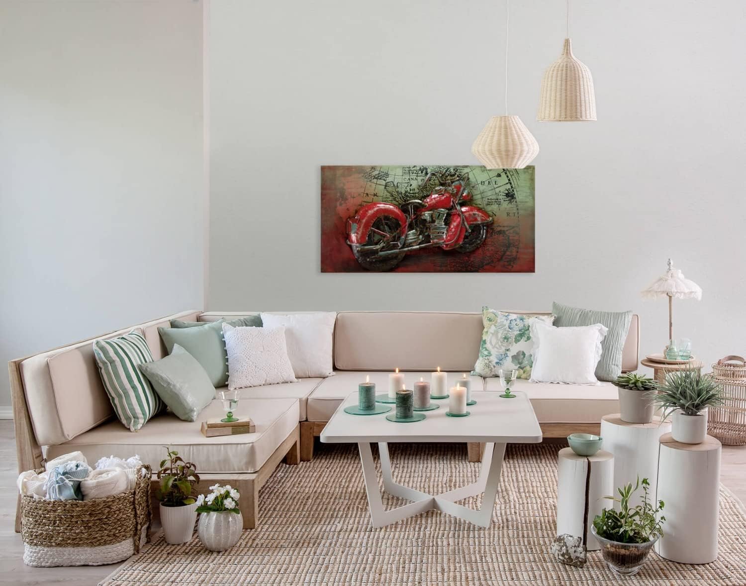 - 🟠 Motiv: Motorrad | Grau Rot | 4,27kg | 100x50x6,5cm (B/H/T)