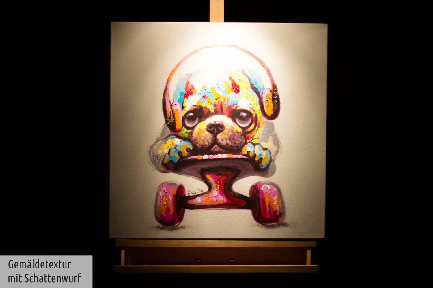 KunstLoft Leinwandbild | 100% HANDGEMALT | 60x60cm | Gemälde 'Longboard Love' | Hund | Bunt | Wandbi