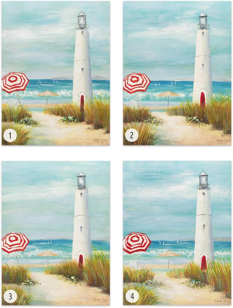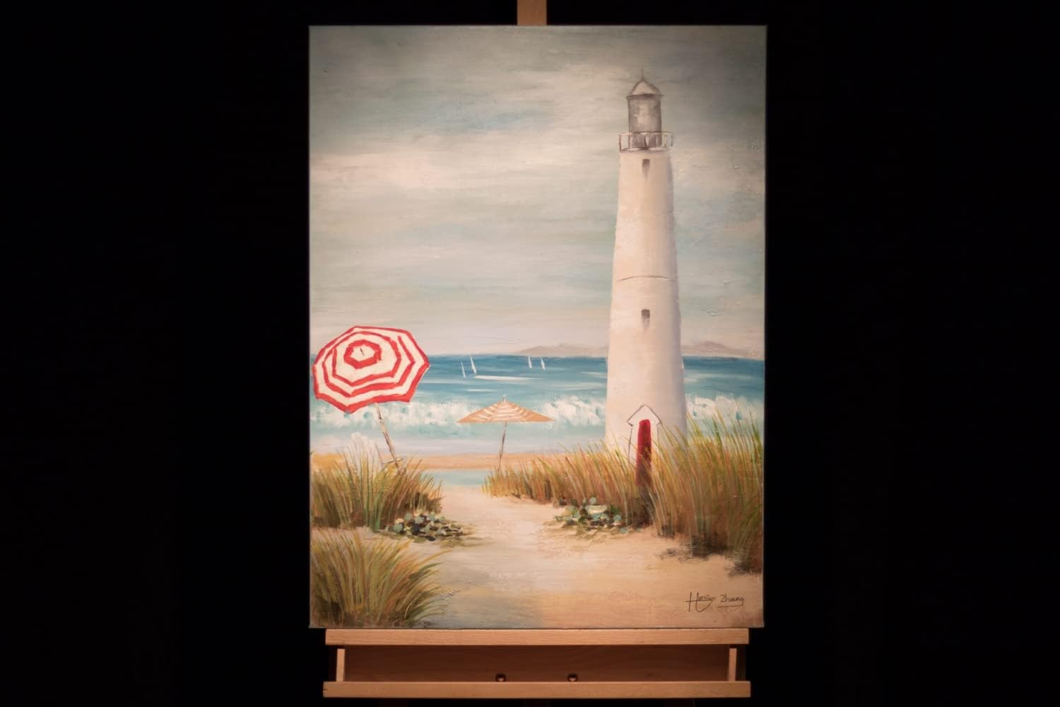 KunstLoft Leinwandbild | 100% HANDGEMALT | 60x80cm | Gemälde 'Maritime Brise' | Leuchtturm | Blau We